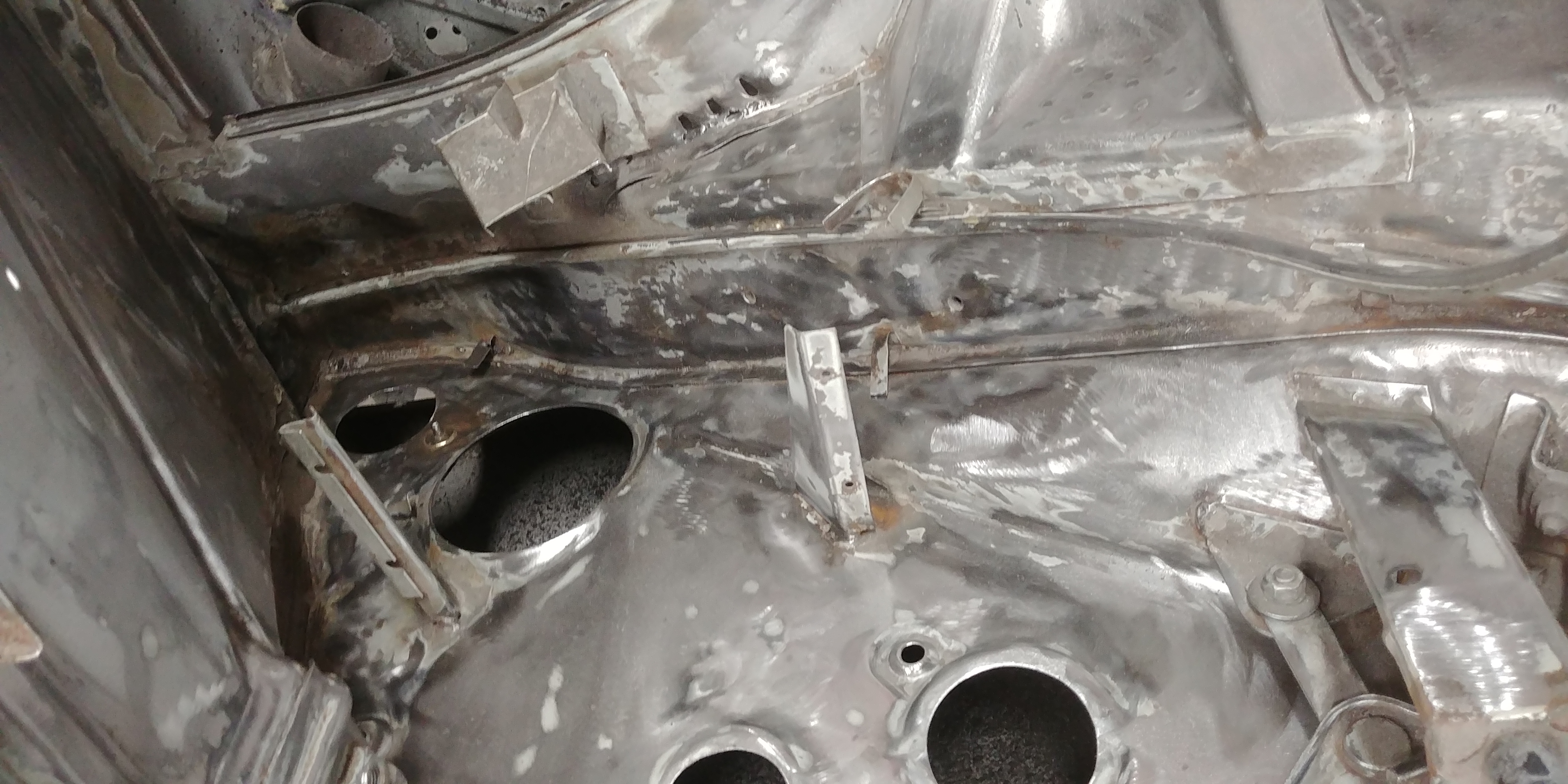 Front fender is completely ground, and now a thin coat of filler.. Seam sealed. Making head way..