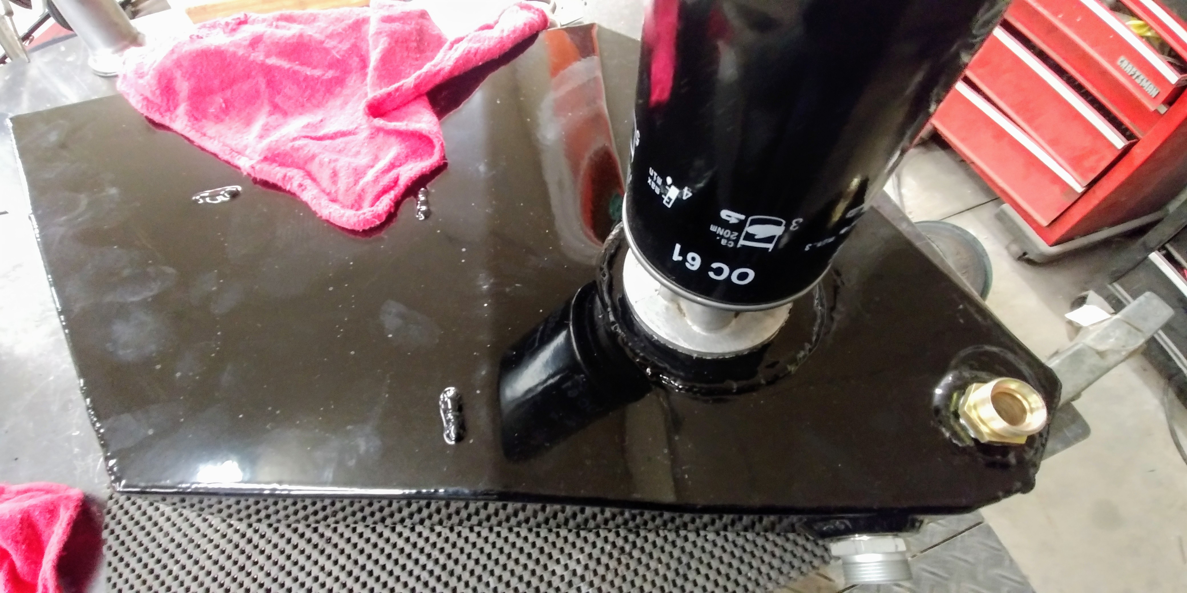 Made some progress yesterday . keep ordering small item's like the Harrell nuts, wire, connectors, ashlock tach adapter, etc.. Tank is an old design with incorrect locations so I modified for my own use and cleaned and powdercoated.. Drilled a hole in the gussett for the oil line and installed the heat exchangers loosely. Will be running soon.. Still waiting on my steering rack.. Starting to get irritated on that but it is what it is..