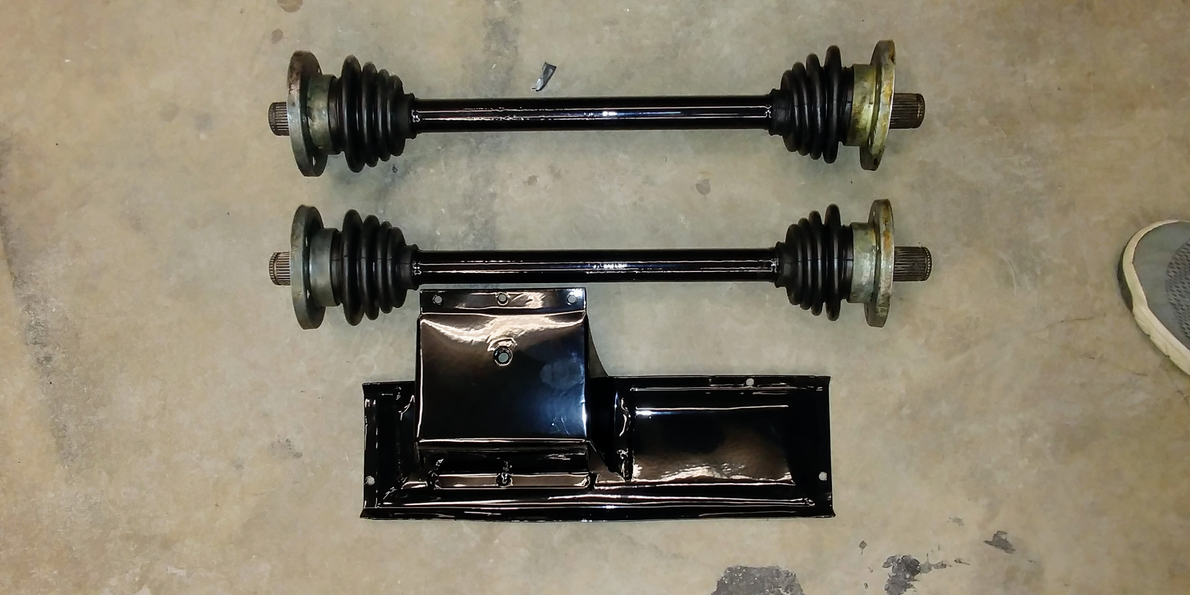 Sprayed final coat of seam sealer. I used upol this time instead of monstaliner only becuase it was available locally. Upol/raptor is more runny then monstaliner but much more tame smell wise. I did find out that my local paint store actually rents the real deal sealer gun made by SEM. Too late though .
