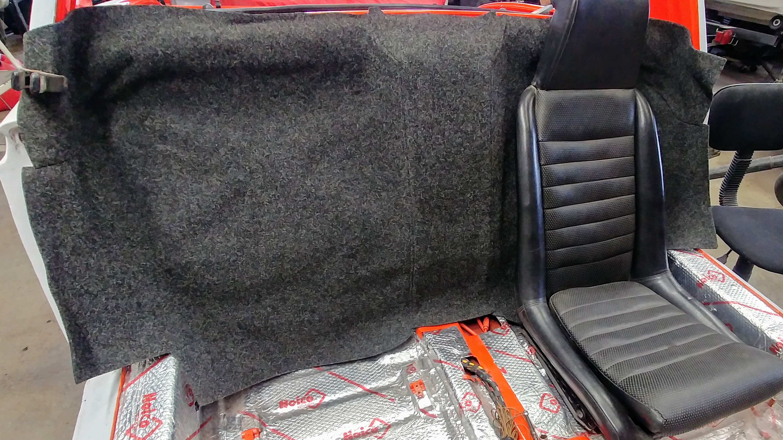 Spent a little me time last night.. Put 3/8" foam referenced earlier in this thread on the inside of the firewall then put the perlon on.. It turned out nice. Only spots that need to be sucked in are the seat belt retractor pockets. My son wanted to put the seat so did that.. 1st time since owned the car seat was actually bolted in..