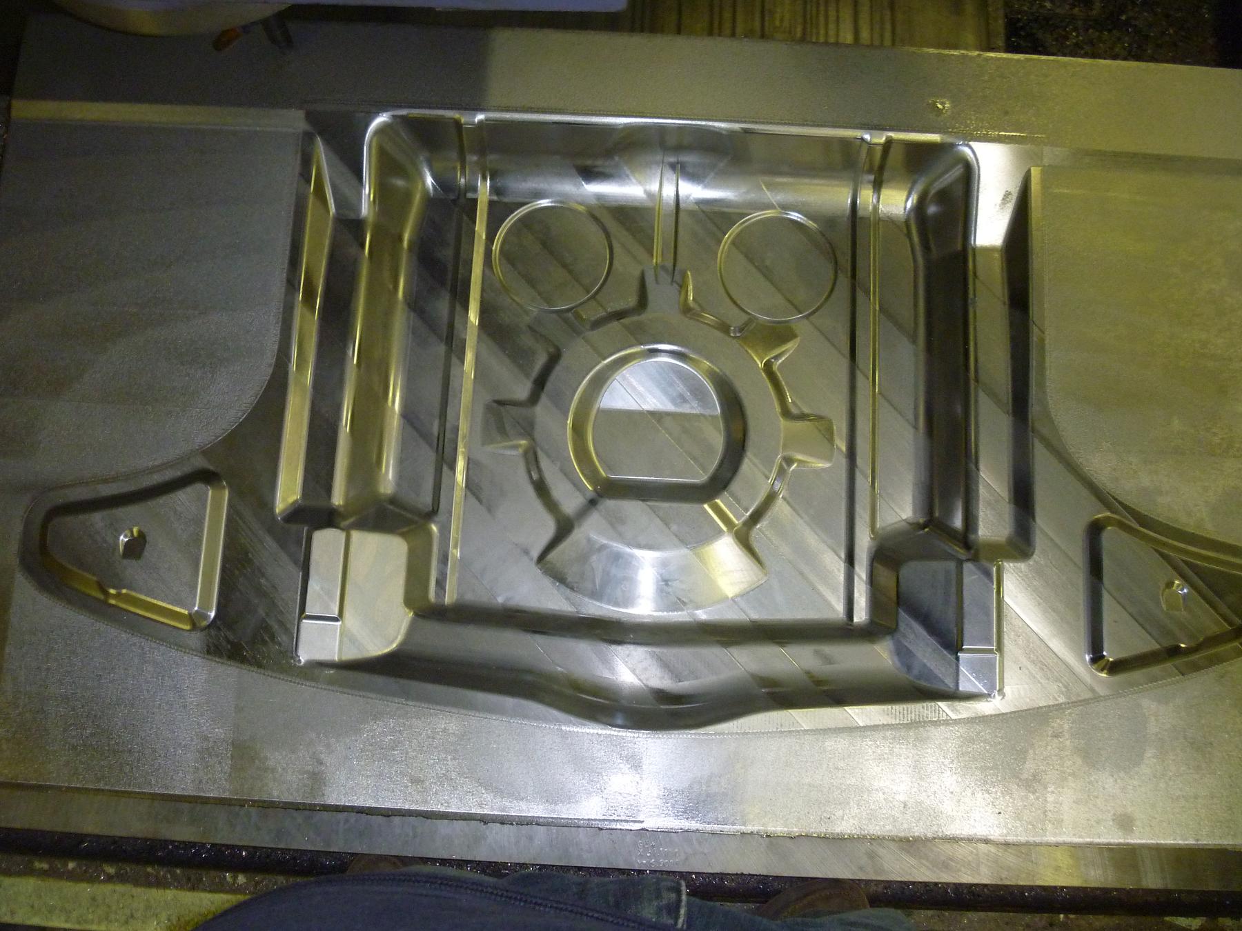 When will this part be ready to buy? Will you make different parts of it or just all of it ? have you any ideas about the price ? Niklas Its hard to tell when the part will be ready. Tonight I will change the tool, and then it will run for 173 hours straight. Then probably another 50 hours with a smaller tool to get in the tight radiuses. After that, 2 weeks of polishing. I still have to make a drawpad, drawings are in the beginning of the thread if you missed that piece. I also have to make feet for the die to sit on and mill holes in the mounting plate of the male for the nitrogen cylinders to fit through. This probably doesn't make any sense to most of you guys, so I will document it all. After all is finished, then there is still the blank development stage, and most likely spots on the die that are still too tight, which will need to be polished more. It is hard to estimate, but maybe another 2 months. Not all my time is focused on this one die currently, there are several that I work on constantly. I have finished the drawings for the corner reinforcement pieces that fit on the pan too. The steel is ordered, so I can start milling that die out once that arrives. I have not figured out a price yet either. I was toying with the idea of an initial sale that would be a reduced price from the final one, just so everyone here watching the progress could take advantage. |