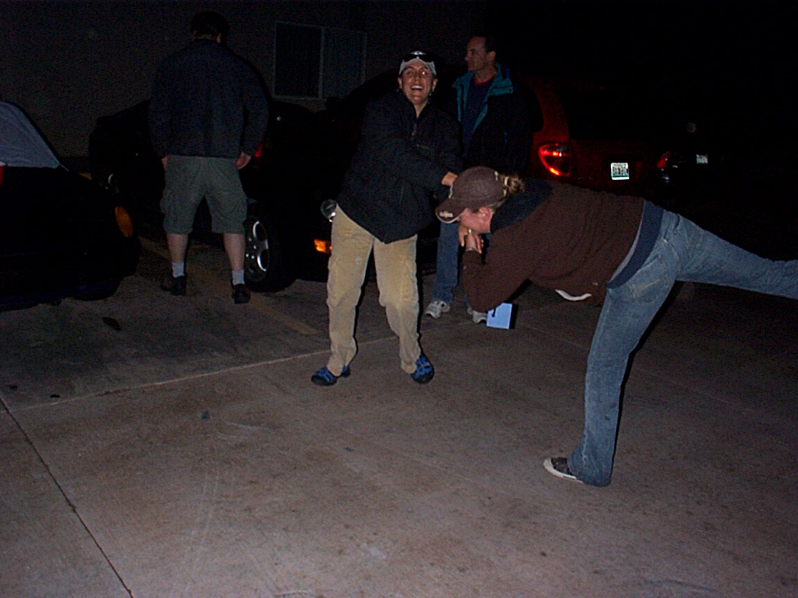 How we saved Howards car! It was late on Sat. night. And most everyone had gone to bed. We were having a final beer, and all of a sudden we noticed that Howard's car was rolling out of the parking lot. The guys panicked, but the girls jumped right into action and tried to stop the car. ![]() ![]() ![]() ![]() Unfortunately, the girls weren't able to stop the car. So the five of us worked together and were finally able to stop the car but sitting on the rear trunk. (IMG:style_emoticons/default/bootyshake.gif) ![]() ![]() Luckly, it worked! ![]() Howard, here are the people you can thank next year. (IMG:style_emoticons/default/av-943.gif) ![]() |