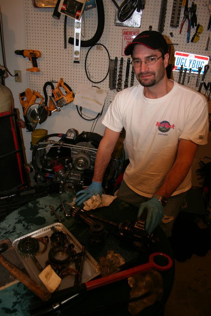Ken (kwales) cleaning parts. Ken's strategy for assembly centered around using hammers. We had to perform an intervention at least twice. Just giving you a hard time Ken. (IMG:style_emoticons/default/wink.gif) He and I actually had a hell of a time pulling first gear off the input shafts of his two transmissions. Mike sharing with everyone. Secrets of the 914 transmission or a story that involved him squeezing large volumes of puss from someone's head in the ER. You decide. |