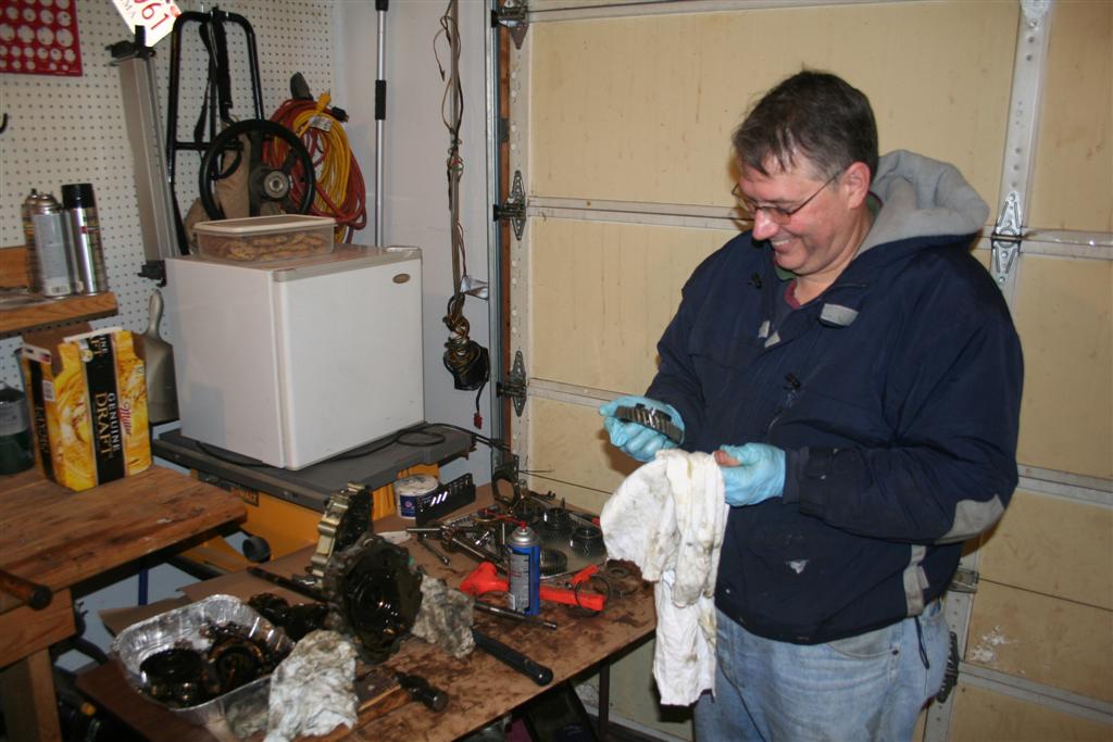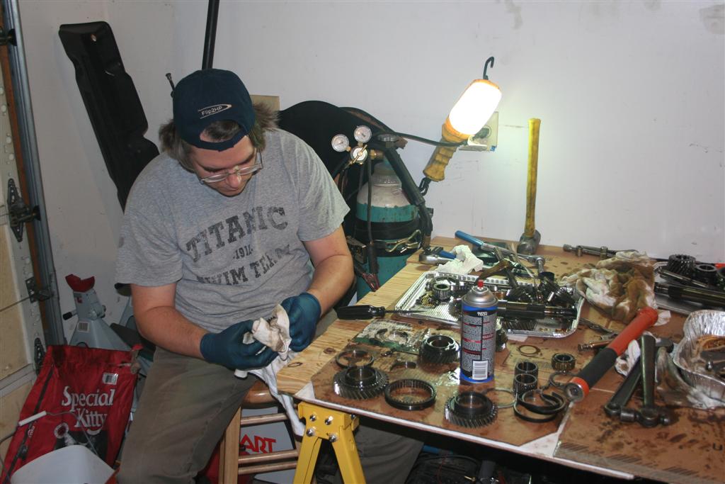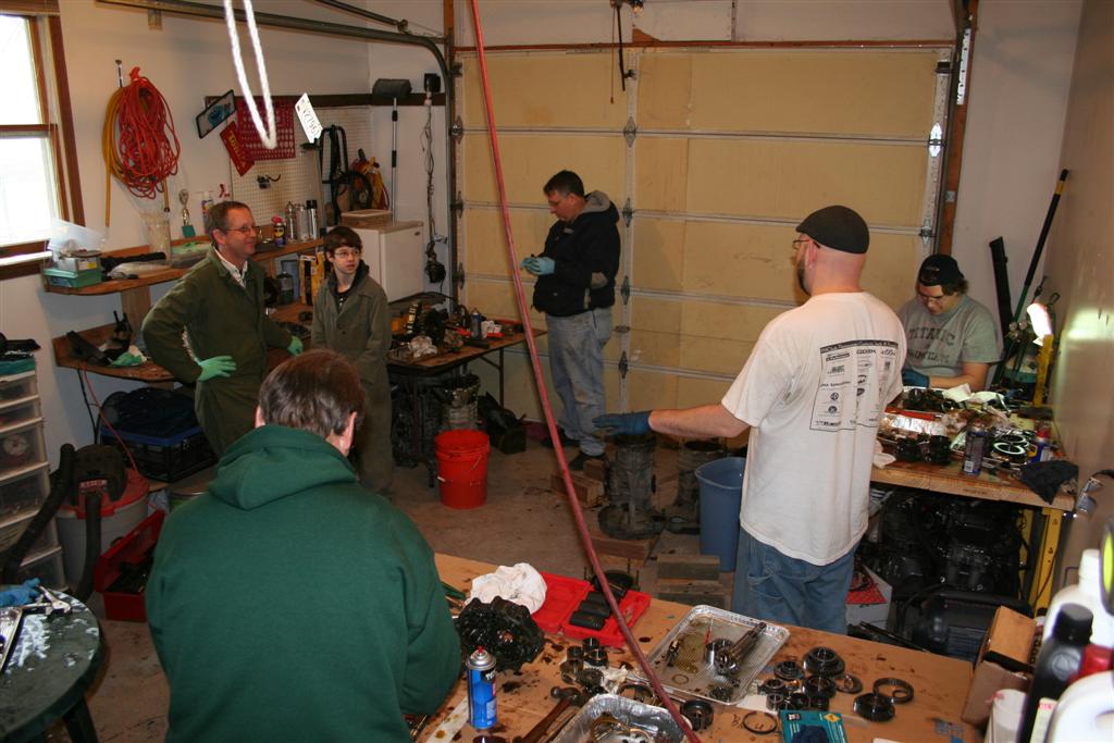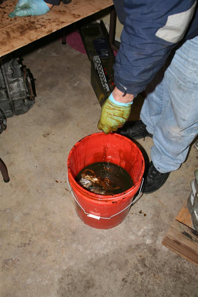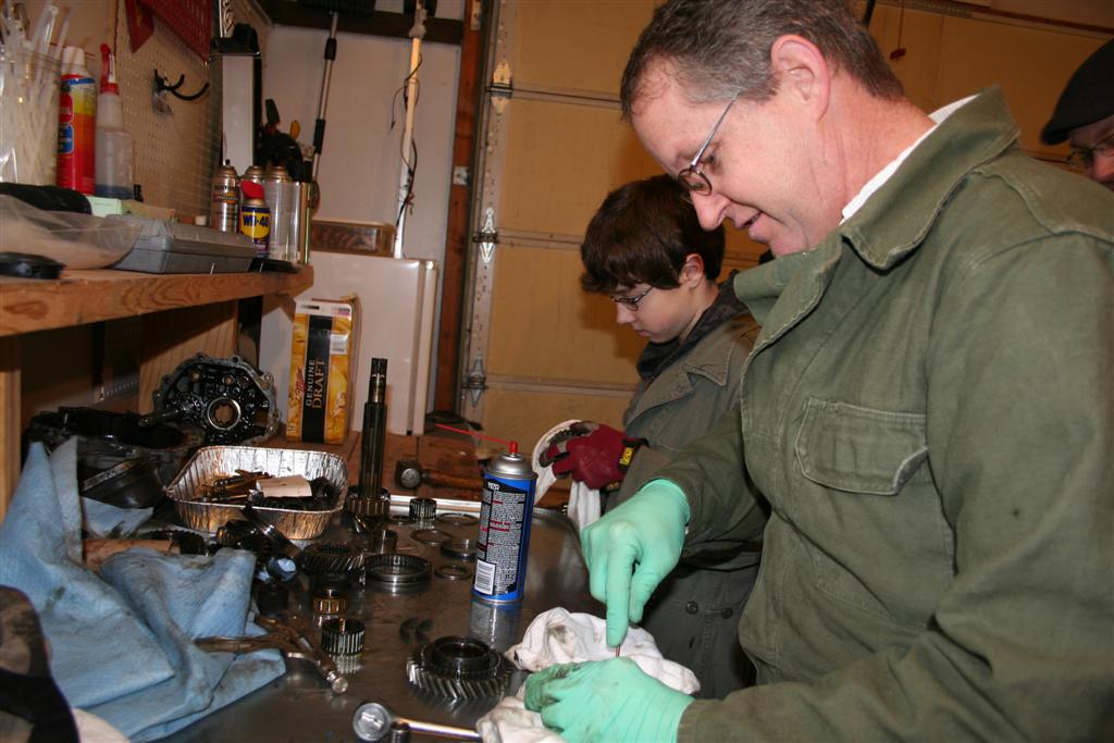A family that cleans transmission parts together stays together. I think Gene is thinking at this point that he wishes he had brought ear plugs for his son. (IMG:style_emoticons/default/wink.gif) A few people forgot to drain their transmissions before they showed up. (IMG:style_emoticons/default/smile.gif) |