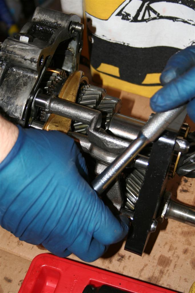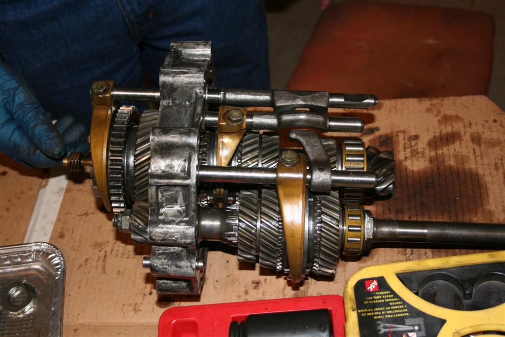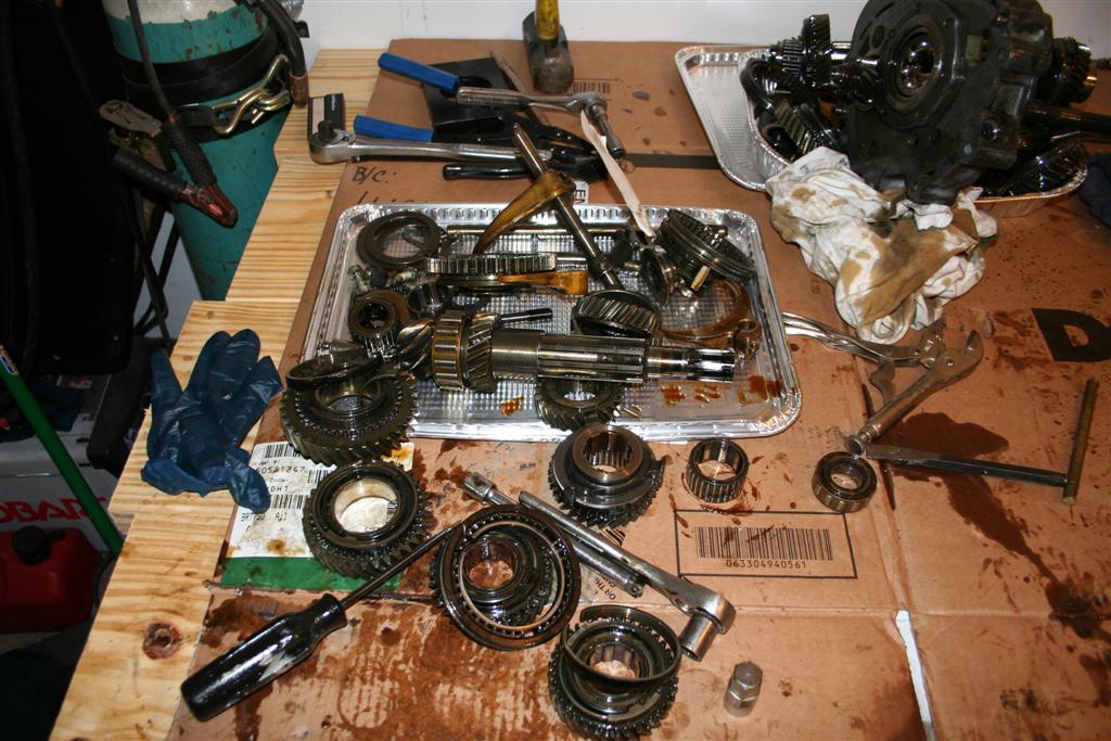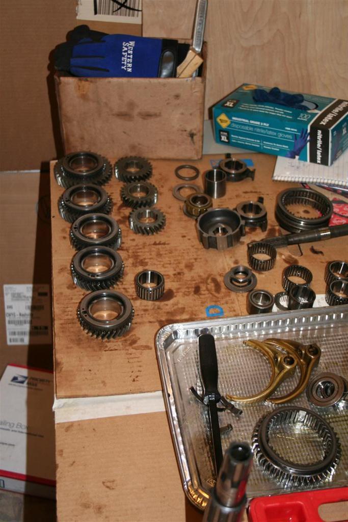 The other clinics go through what you need to bring. It's about 18 pages of reading for each link. Like engines, yer gonna need a seal kit to button it up. The paper gaskets are color coded and are critical to setting the play. If you are lucky, somebody may not need the color gasket that you need, and you can get the play adjusted. Then keep it dry (no oil) , order the seal kit and finish it later. Here's a part list of tools that I searched out. Tools needed: -13mm socket -14mm socket -wrachet -vice grips (large is good) Tools that are nice to have: - Set of drifts - Large crescent wrench - Hammer - Larger pin pliers Things I (evil) will be supplying: - Aluminum work surfaces (disposable flat cookie sheets) - Aluminum parts wash basins (disposable roast pans) - Brake cleaner - Carb cleaner - Rags - Foul language, dirty jokes, methane, beer recycling, etc. Bring a table for a work surface. Bring a chair. Bring cardboard to keep Andrews place clean. Bring money, food, drinks, snacks, beer. Because I'm me, I'm bringing hand cleaner (gotta drive home), a roll of paper towels, cleaner in case I mess up Andrew's place, extra clothes, tools I think may need, etc. Rather have too many tools than not be able to take something apart. And, bring the tranny drained, and the exterior CLEAN. And, bring a spare tranny if ya got one. You may need the extra parts to make just one working one. |
