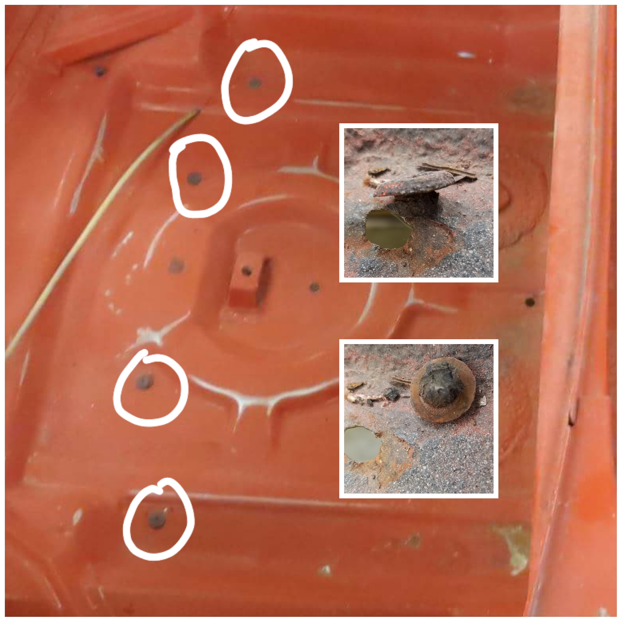I actually just discovered that there are 4 plugs that look the same as those pictured above in the bottom of the Frunk (I couldn't see them from above because they had been painted over). There were two empty holes in the middle of the frunk floor. Is that where the two drain tubes that Mark makes go? Yes |