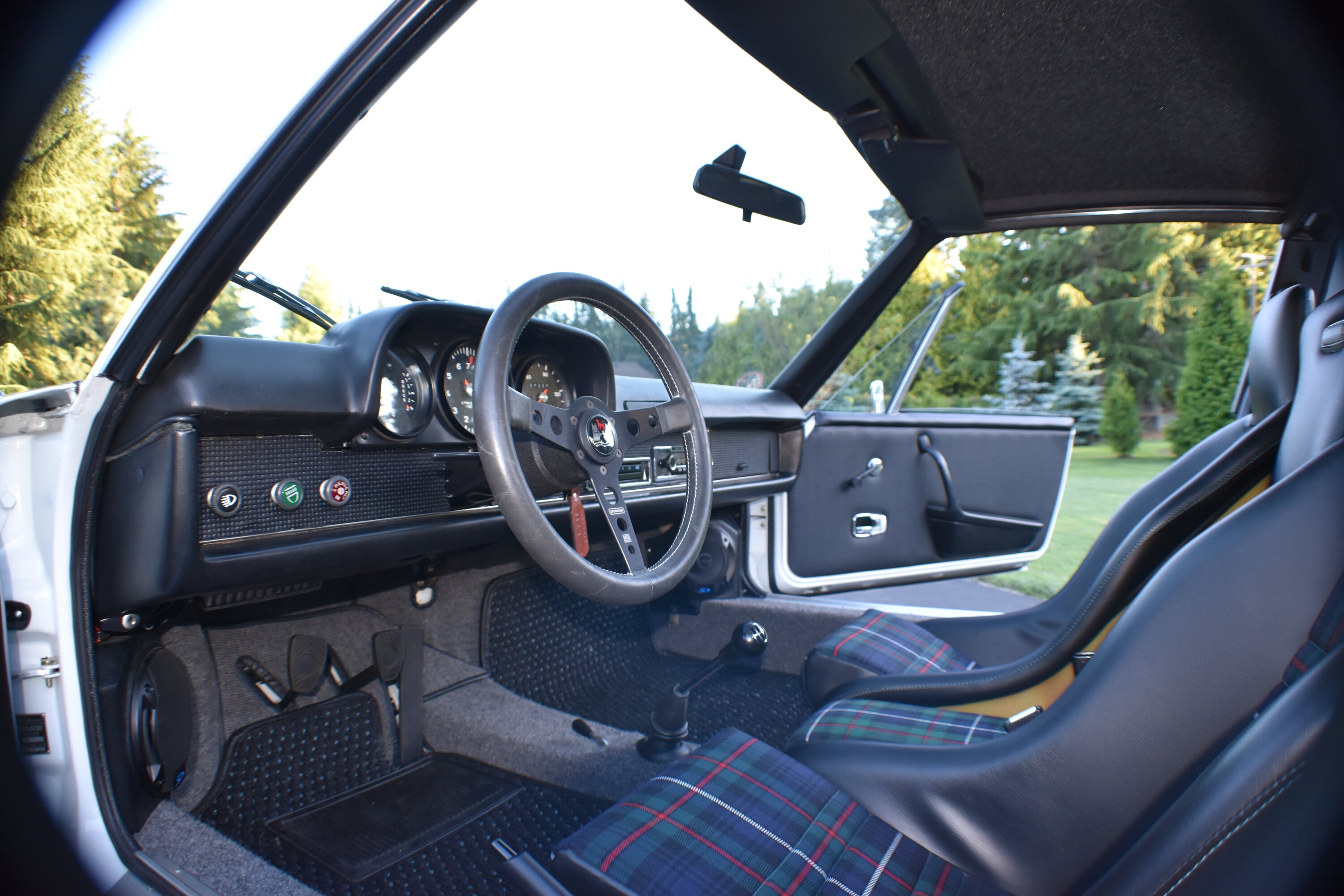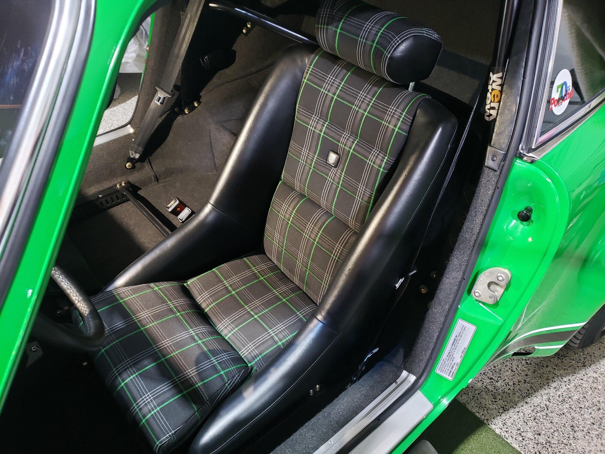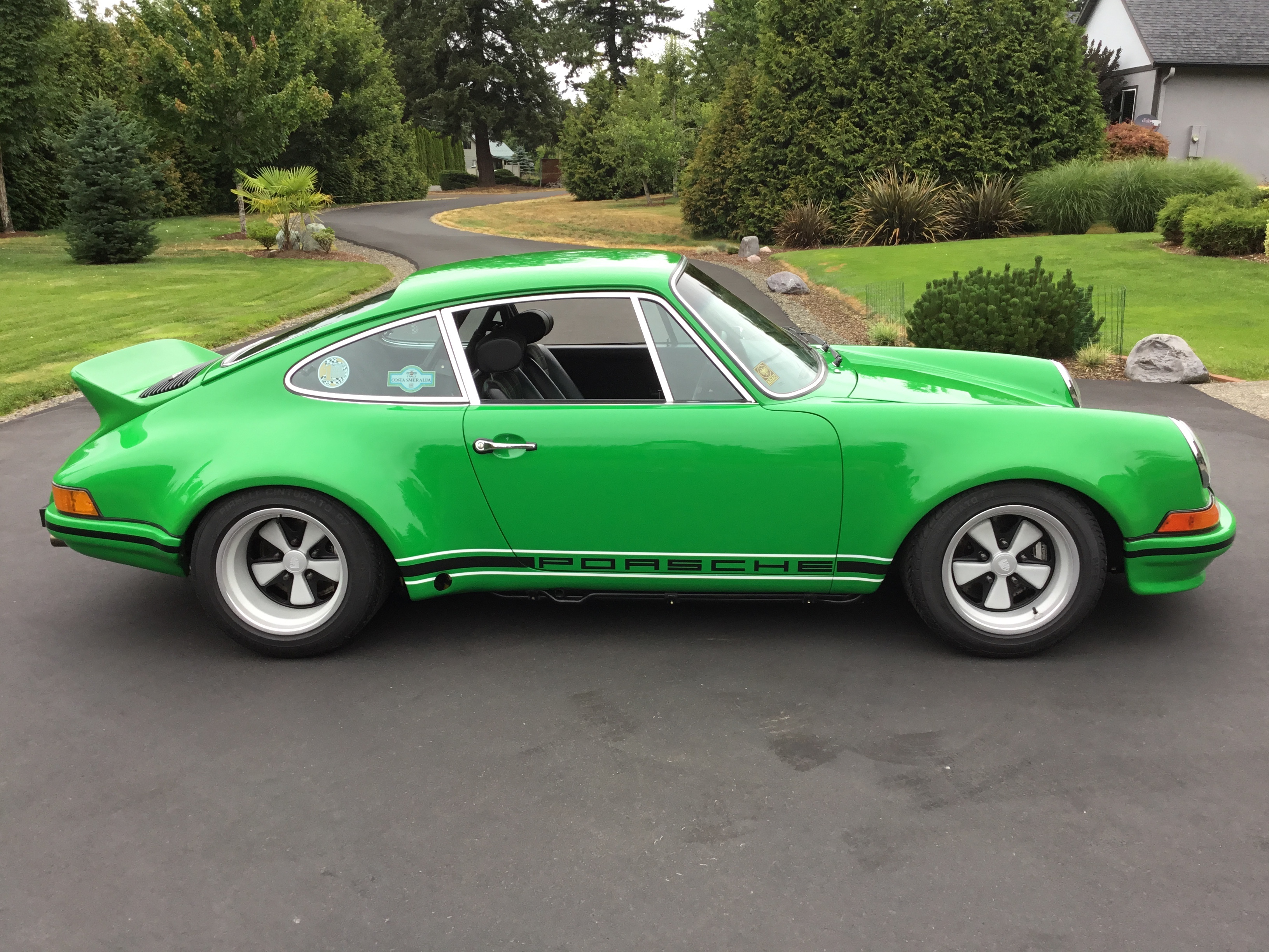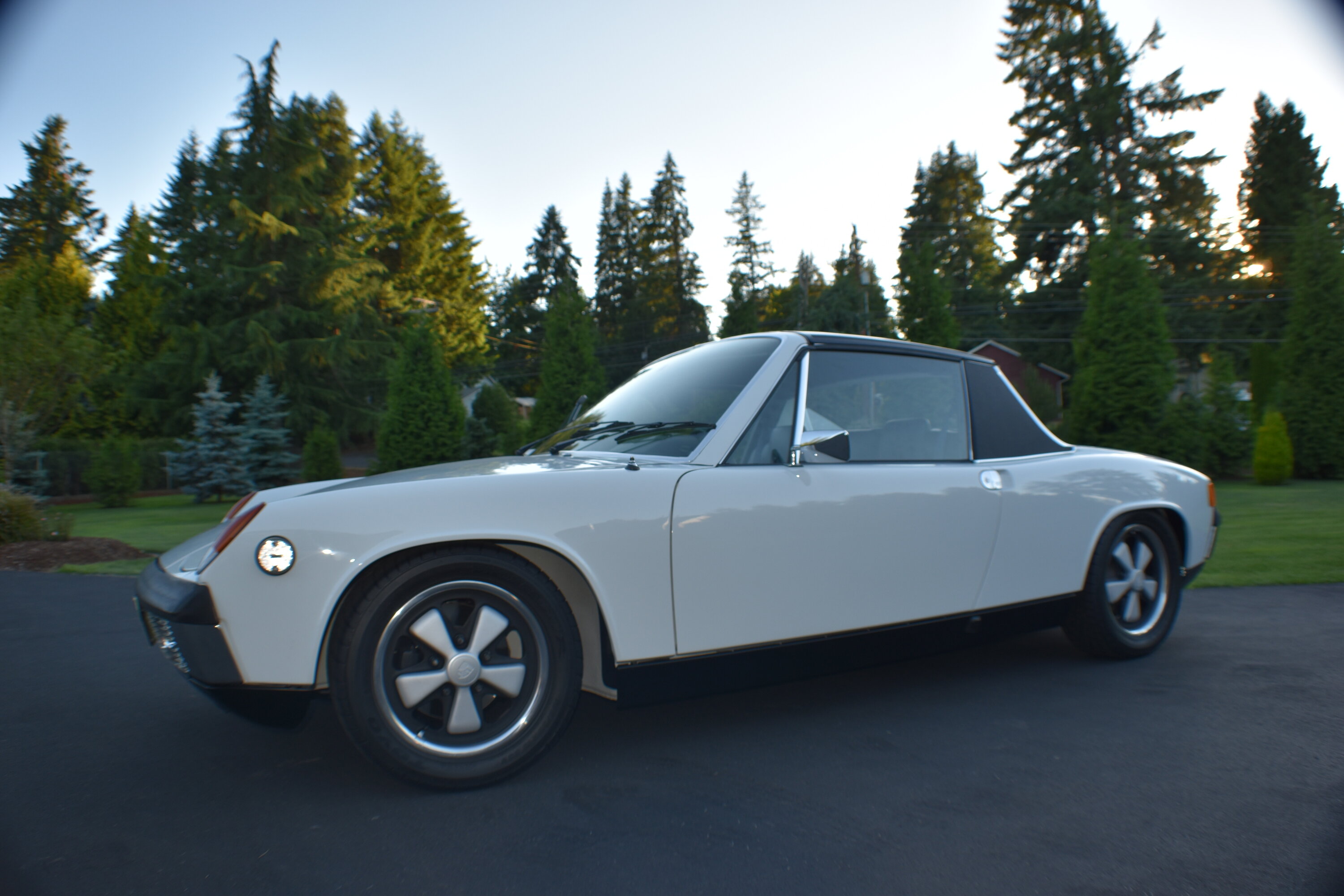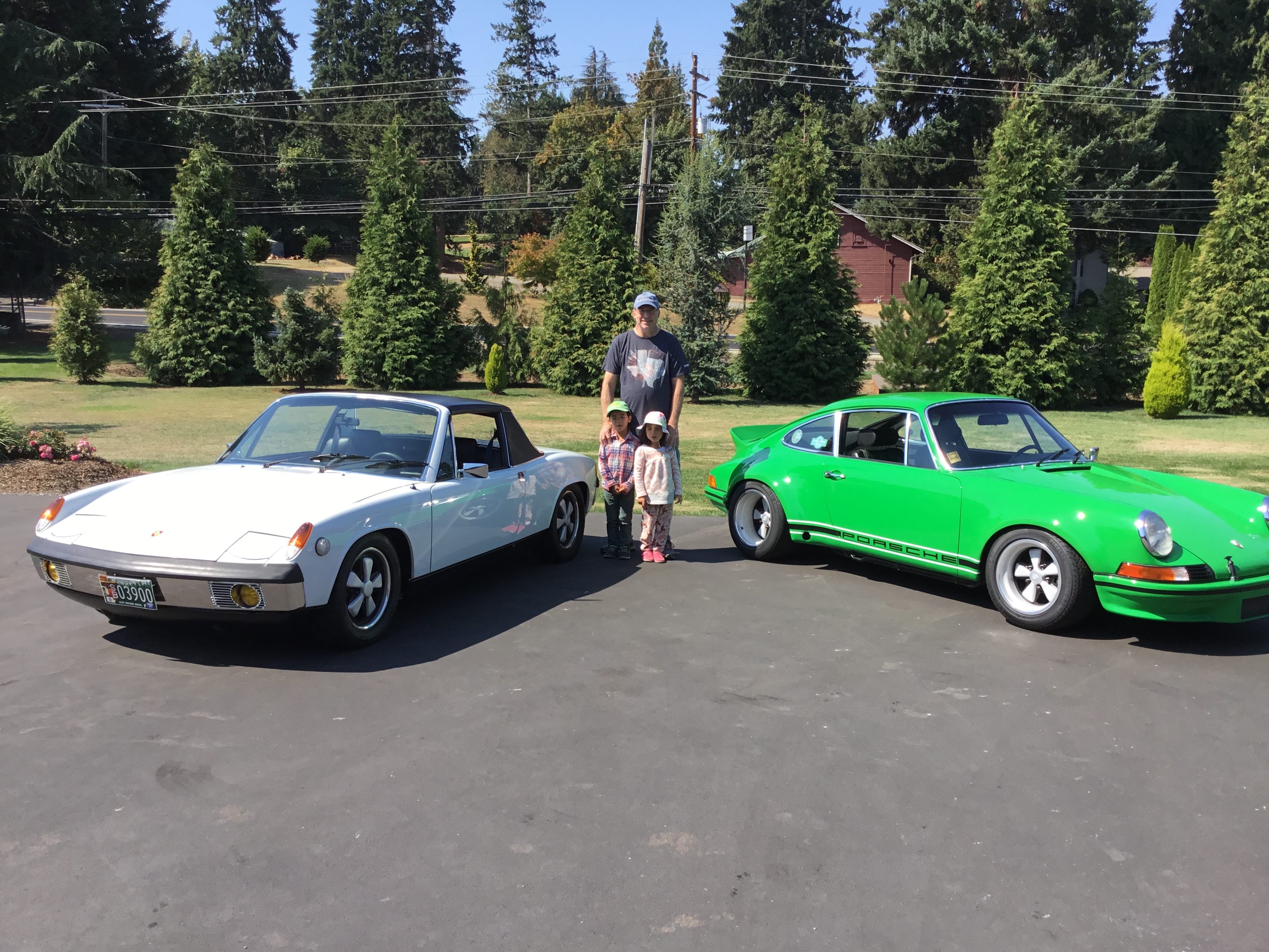 She's home finally. Had a false start last week. Half way home, the engine started to cut out and wouldn't run at any kind of throttle. Trailered back to Rothsport, and they tracked it down to a fault in the fuel shutoff solenoid for the MFI system. Beautiful day in Portland, so I went back out and fetched the car. Safe at home in the garage. Sharing space with its stablemate. Lots of little projects to take care of besides driving it as much as possible in the next week or two while the weather is nice. Typical Portland winter monsoon season is coming soon. Need to lower the mirror on the windshield so I can behind me better. Lubricate both the steering wheel and gear shift....squeak, squeak. Purchase and install a small steering wheel. The current 380mm factory wheel is just too big for my long legs. Looking at a 350mm aftermarket of some type. Need to purchase a new micro switch for the MFI fuel cutoff circuit. Mine is obviously dodgy. The one that is failing was new when I purchased it. Bad QC I think. Repair and repaint right corner of the front valence. Tow company jacked that up with their tow straps getting me to the shop initially. Nice set of Coco floor mats to match what I have in the trunk. Copy of the prop rod that some of the 914-6 GT's used. Kelly Moss will make me one this winter. Then I can ditch the long fiberglass rod. Purchase the heater box barrel nuts so I can finish the heat/defrost install in front of the engine. My parking brake light just stays on, so I think the little switch down by the parking brake handle is no good. Again some bad QC on some of these parts. Long term projects for next year include: -possibly softening up the suspension by going with 19mm T-bars (current 21mm) and 125# rear springs (current 150#). Just drive and we'll see for now. -gearing is very short. Great for auto-x, rallying, etc. Long drives on the highway, maybe not so much. Again it's not an immediate issue. But might look at changing out 5th and possibly 4th gears. -refinish and repaint the roof. Looks fine, but if you're a perfectionist, it might need some attention. Ha That's all for now. I'll get some more close up pics of various parts of the car up here in the coming weeks just for fun. Car is running cool so far. Just 90C after everything is all warmed up. We'll take a wait and see approach to adding the aux oil cooler. Likely need an auto-x on a very warm day or a track event to get the temps up there. Or some 105F weather as we sometimes get here in the summer. Green car's nickname is Kermie. 914 will be Snoopy....black & white with an attitude. Love the contrast! |