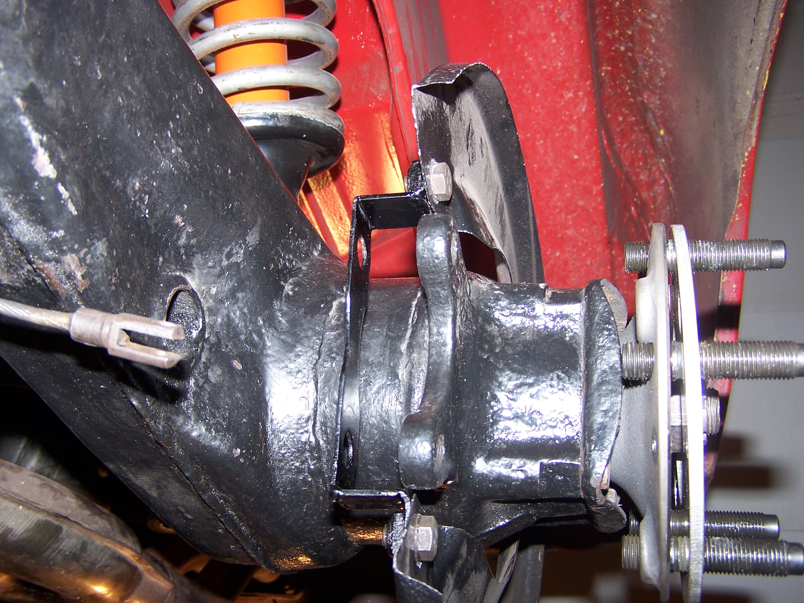 I was thinking about cutting the brace on the vertical portions and extend the brace to attach on the top of the caliper mounting tab instead of below the tab. Attached thumbnail(s) |