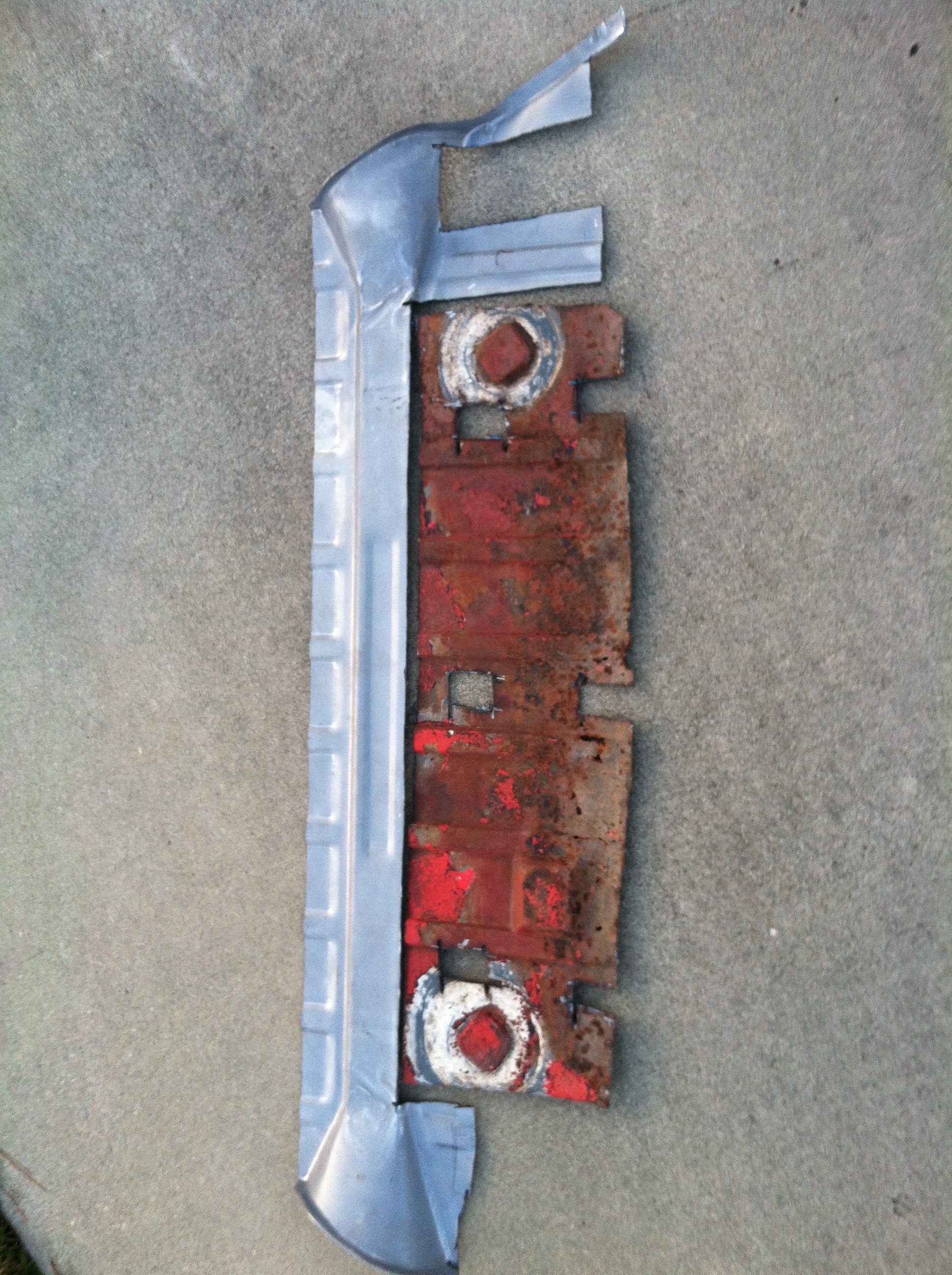 I gratefully request you to post pictures of the ties before you weld them on. Thanks Will do. Stopped by the dealership this am. All four parts are NLA. So fabrication is the only answer. The 12 guage is over our paygrade, wish we had a forge. So the big ass hammer is the tool of choice, leaves it kind of ugly. |