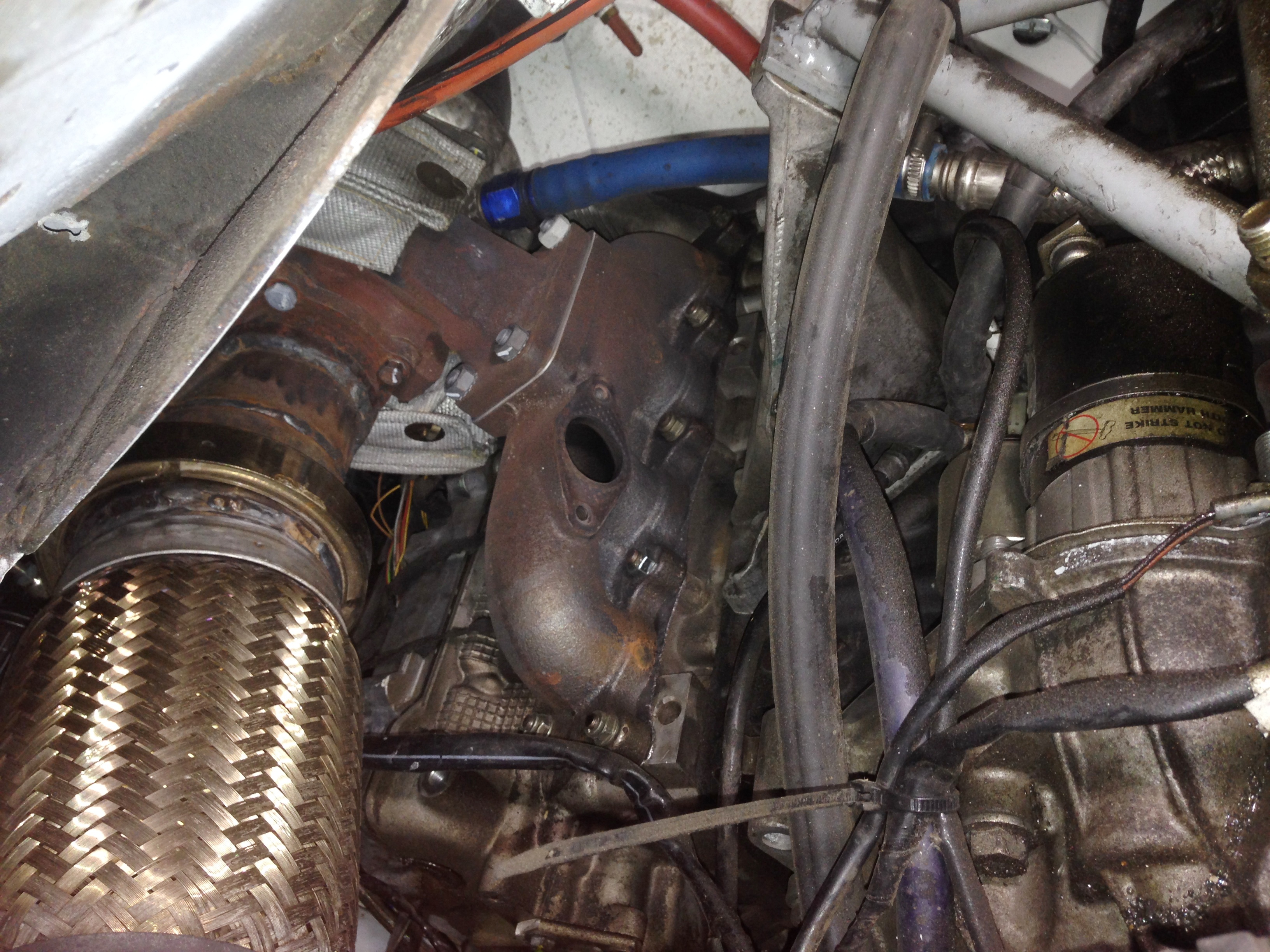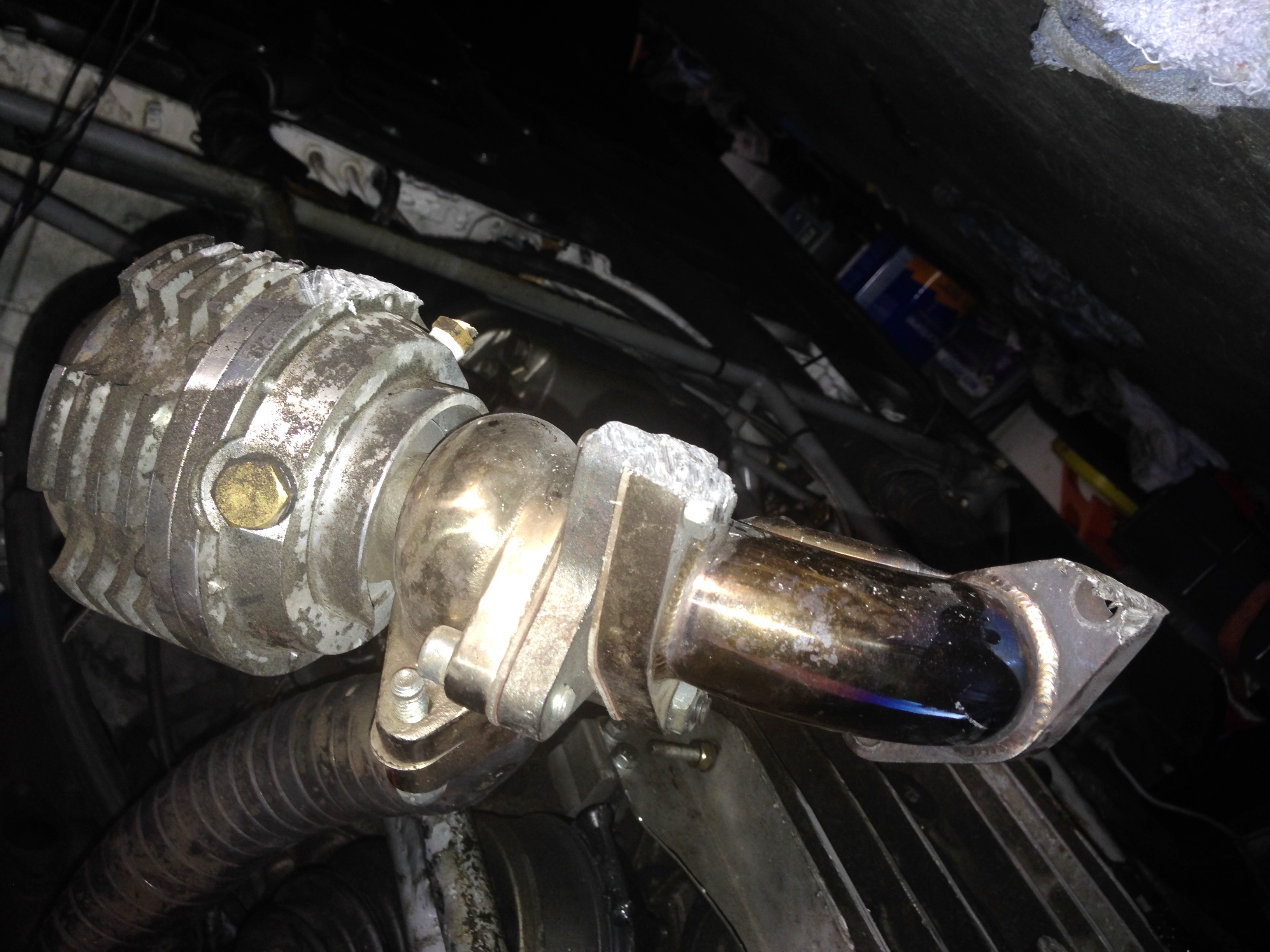 Well there's your problem... There's a hole in the exhaust manifold... No wonder it was loud and not making boost!