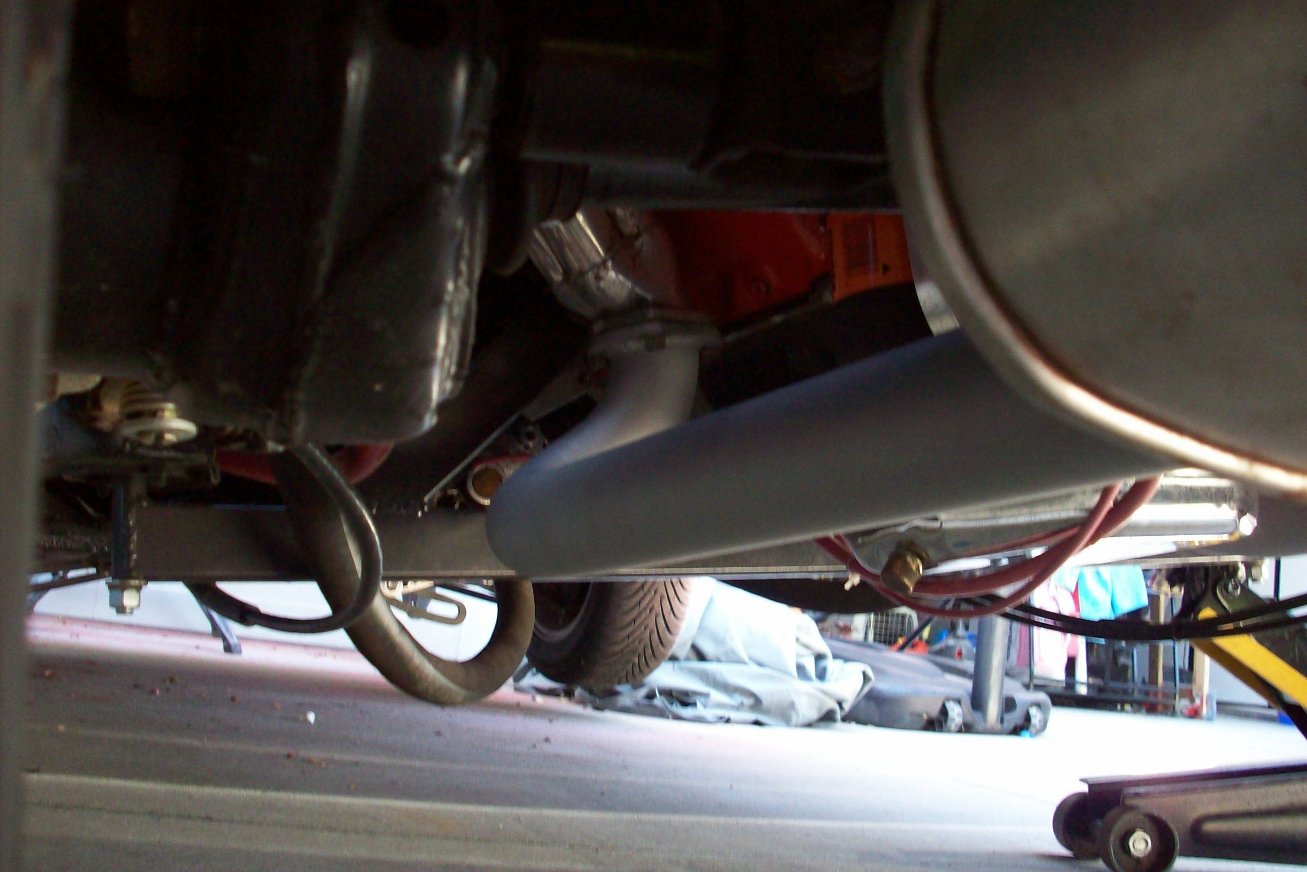 Though not an SBC, I used stainless mandrel bends and routed the exhaust over the axles. Not sure which muffler shops can weld stainless (perhaps these days they all can), but it's a pretty simple task for a decent shop. There are quite a lot of V8 exhaust system pictures on this site if you search around. I seem to recall a dual inlet/dual outlet Camaro muffler that fits in the original location that looked real nice. Andys That'll never fit! (IMG:style_emoticons/default/smile.gif) |