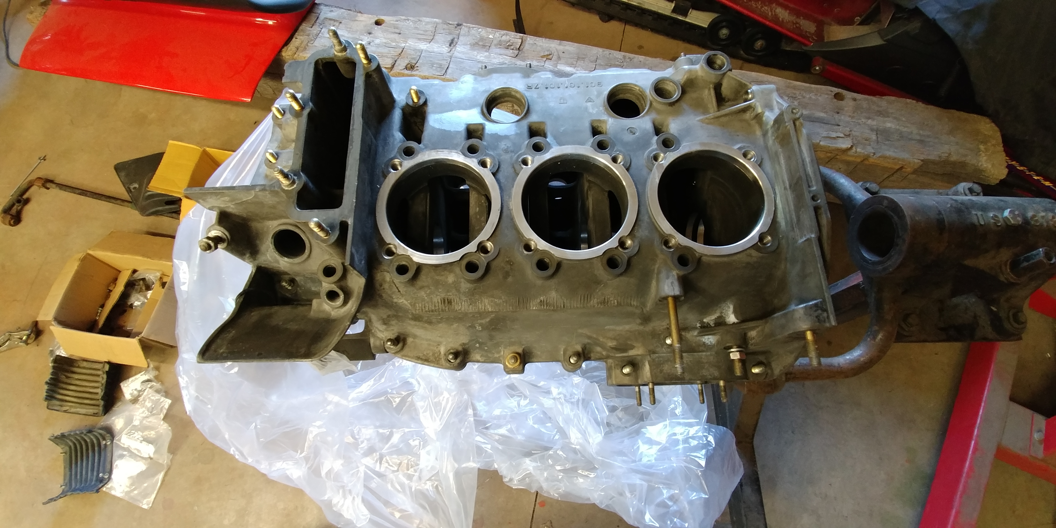 So, now I was able to dig into the motor more (technically, I could have without the tools, but potato tomato) Started with the cyl 1-2-3 bank. pulled the rockers, cam, cam housing, heads, and cylinders. cam is 901.105.133.0R which is the stock cam for this engine (1971 911T). I'll be measuring them up to see if they've been ground at all. cam - #3 cyl end (IMG:http://www.914world.com/bbs2/uploads_offsite/c1.staticflickr.com-19709-1499959839.1.jpg) cam - middle (IMG:http://www.914world.com/bbs2/uploads_offsite/c1.staticflickr.com-19709-1499959839.2.jpg) cam - #1 cyl end (IMG:http://www.914world.com/bbs2/uploads_offsite/c1.staticflickr.com-19709-1499959839.3.jpg) #1 head (IMG:http://www.914world.com/bbs2/uploads_offsite/c1.staticflickr.com-19709-1499959840.4.jpg) #2 head (IMG:http://www.914world.com/bbs2/uploads_offsite/c1.staticflickr.com-19709-1499959840.5.jpg) #3 head (IMG:http://www.914world.com/bbs2/uploads_offsite/c1.staticflickr.com-19709-1499959840.6.jpg) all of the cylinders looked like this (IMG:http://www.914world.com/bbs2/uploads_offsite/c1.staticflickr.com-19709-1499959840.7.jpg) everything is generally caked in either carbon deposits or oil/grime, but is in generally good shape. (IMG:http://www.914world.com/bbs2/uploads_offsite/c1.staticflickr.com-19709-1499959840.8.jpg) So, everything looks pretty good. And by pretty good I mean nothing terribly terribly borked. i.e. no valve/piston contact or broken rings. The whole thing came apart pretty easily, no complaints. Of course I've been bagging and tagging all the hardware, bigger items go into my build cabinet (IMG:http://www.914world.com/bbs2/uploads_offsite/c1.staticflickr.com-19709-1499959840.9.jpg) |