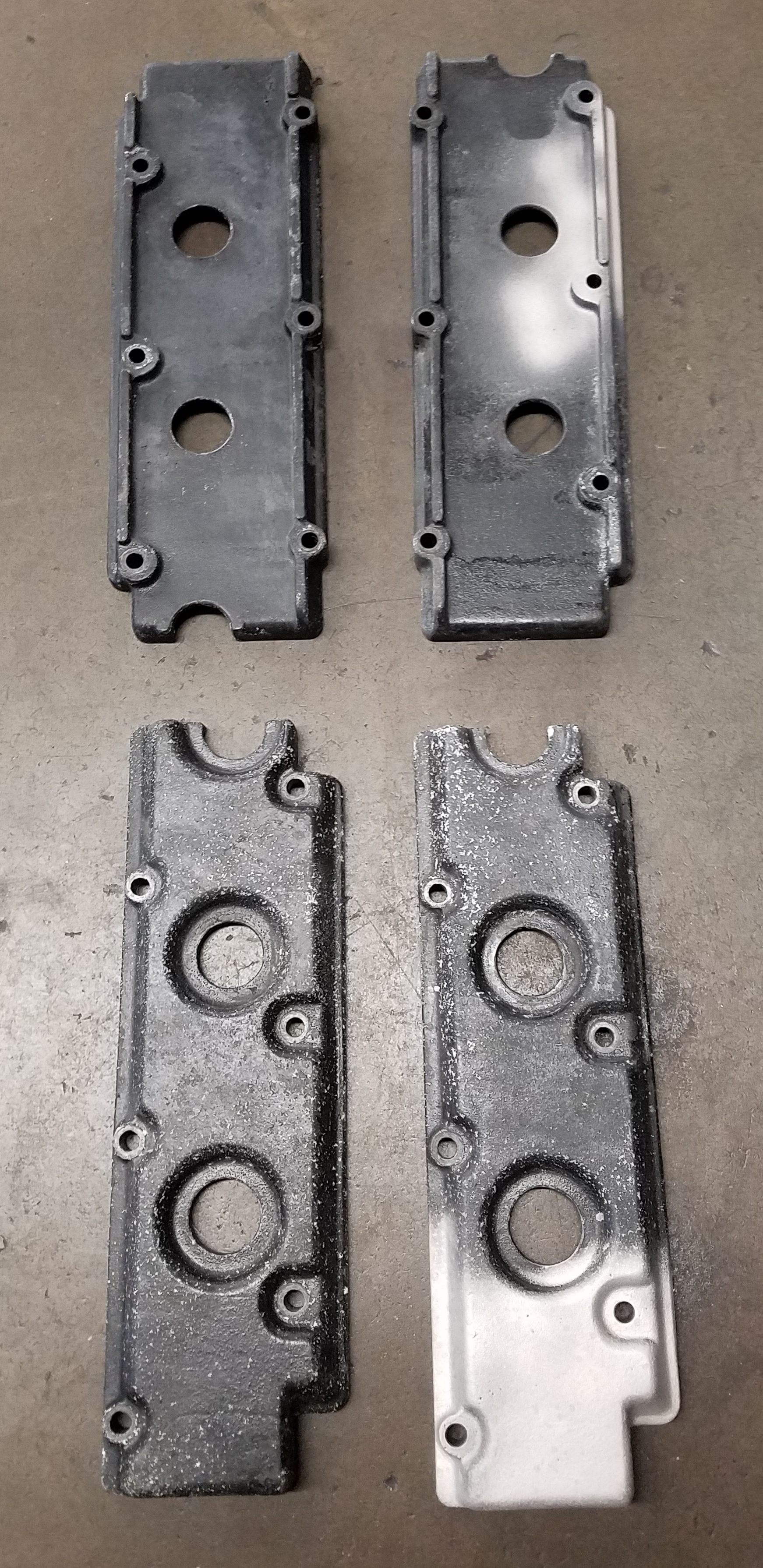 Are those Mag covers warped, most are including the ones off my car, they now live in a bin on the shelf. Using Modified Turbo Covers...Keeps the garage floor a bit cleaner lol Yes I do recall my old 2.7 lower covers, used to constantly put them across a lapping stone to get flat. On these covers (906, 911R style) it looks like these were cast with the additional 1/4" ribs , in order to keep them flat when the engine ran higher temps in competition. These will be restored, then coated with black ceramic...looking to keep the #40 pure to its bones as possible. |