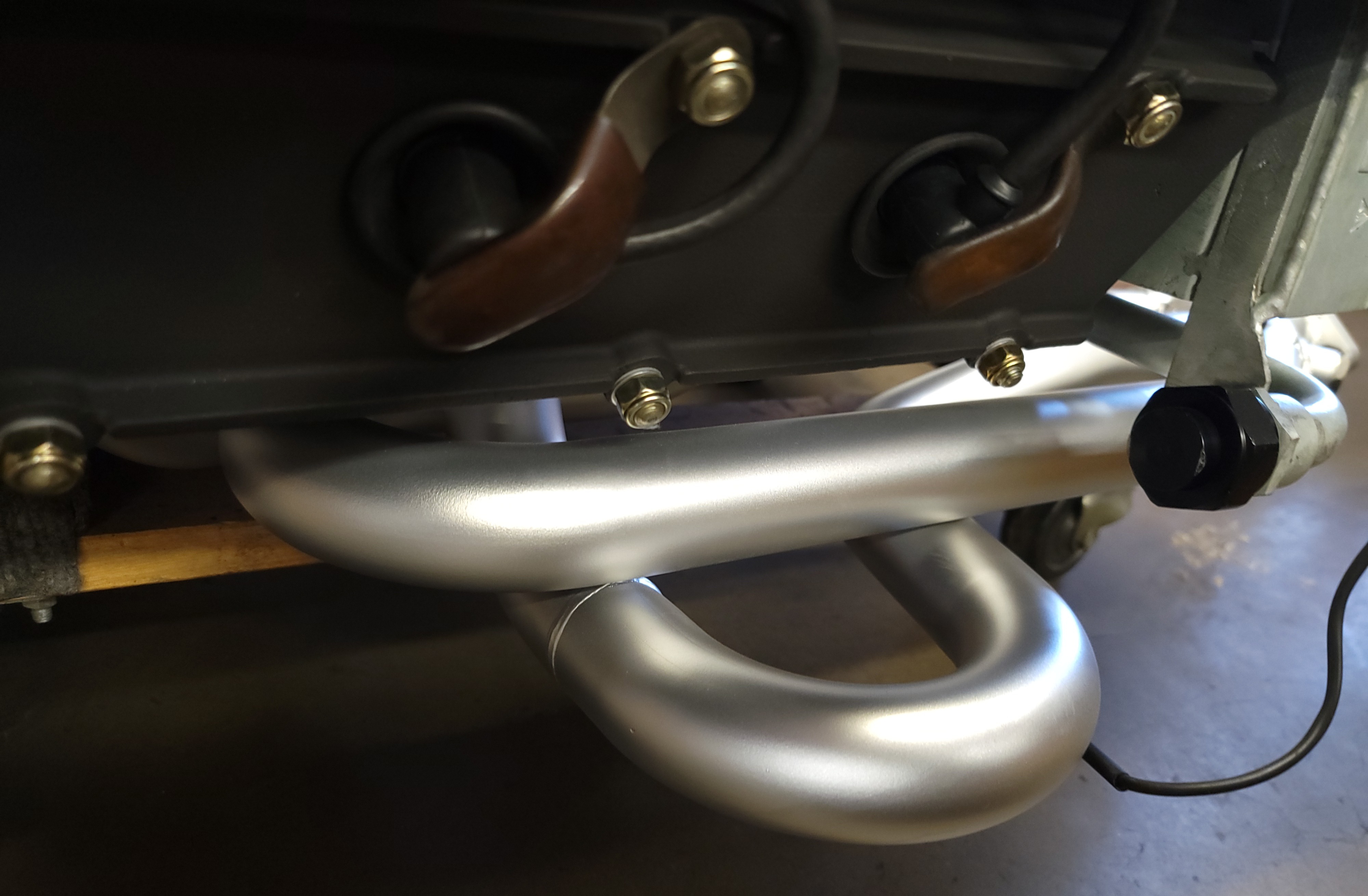 Can you put heater boxes on them? I need a set of short heat exchangers like these headers so I can put mufflers on my car and get rid of the supertrapps. Clay Clay, just find a local sheet metal shop to form the 18 or 20 gauge "Clam-shells" on the break, and that's 75% of fabbing' the custom HB's. You can easily make the cardboard samples for the shop. There's a good section towards the rear of these headers that are on a flat plane. There's a set here in large tube 1.75" od (4.0L) with Clay & Betty's name on them; RuF recently took 2 sets for their vintage GT builds (IMG:style_emoticons/default/number40_914.jpg) Not a problem @mb911 on the lambda probes, as we only insert them on test + tune days, then replace with the threaded port-plugs. Clearance is the issue, so hence the placement of the ports. |