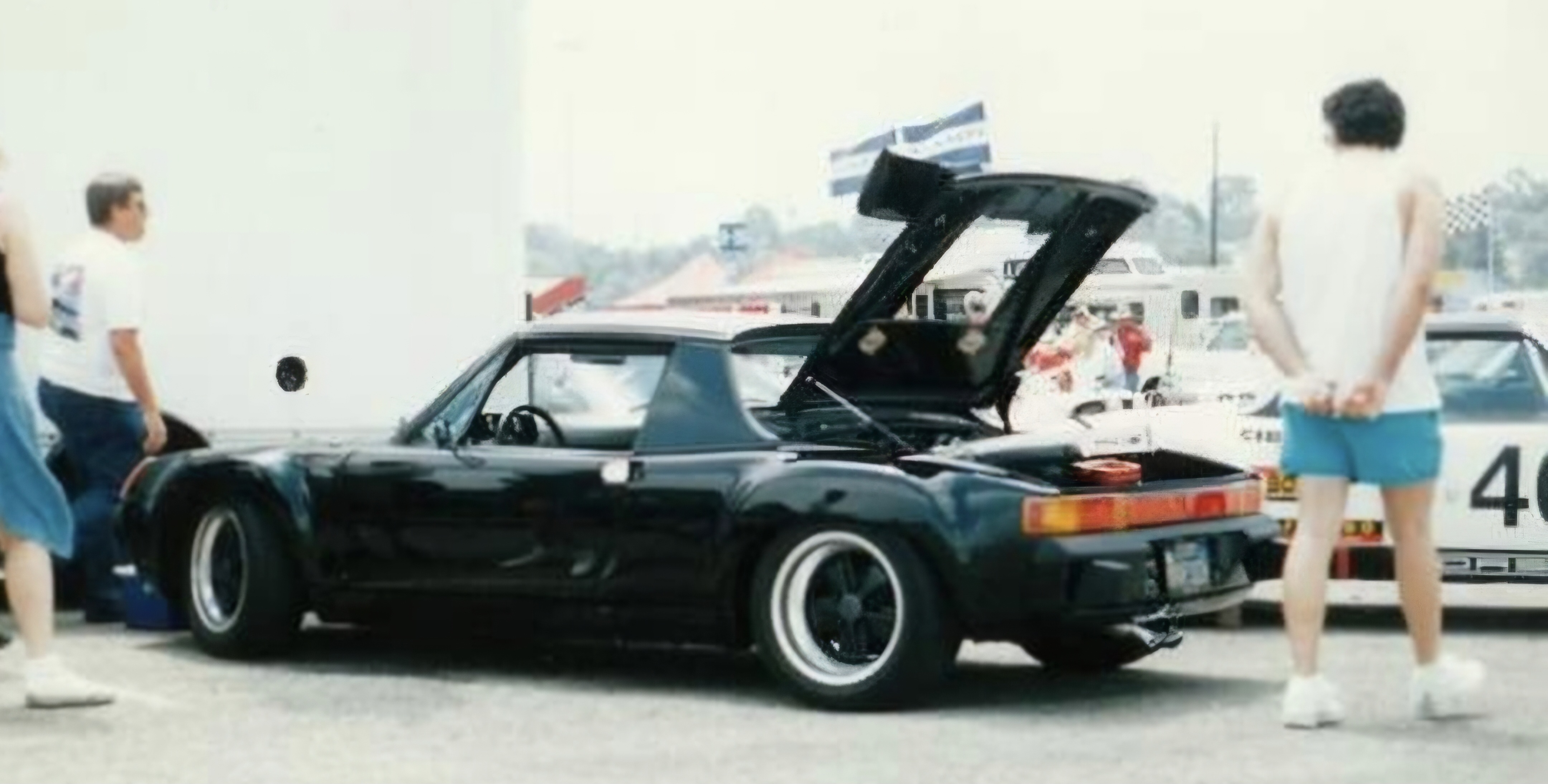 #40 met up with my black six at the 1995'ish Pomona Fairgrounds for the PCA tribute to Vasek Polak road race; photo by my bud Scott.
