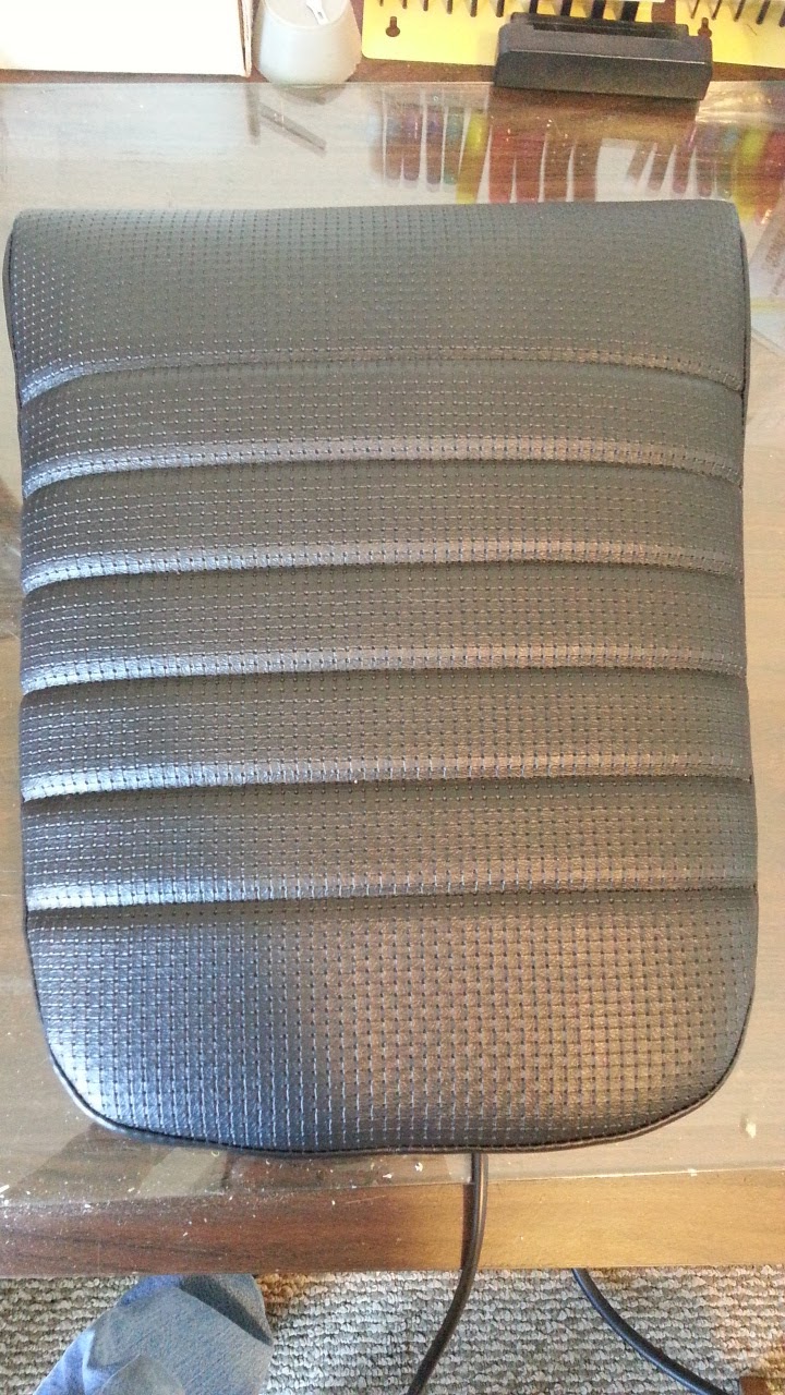 It is pretty cold in the garage today so I decided to do a little work inside the house on my 914 seats. I am installing heated seat inserts and new seat vinyl kits from 914 Rubber. So far I have both bottom cushions completed and one of the seats completely stripped. The foam is in pretty good shape for being over 40 years old.