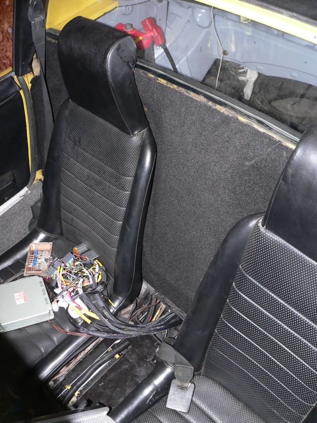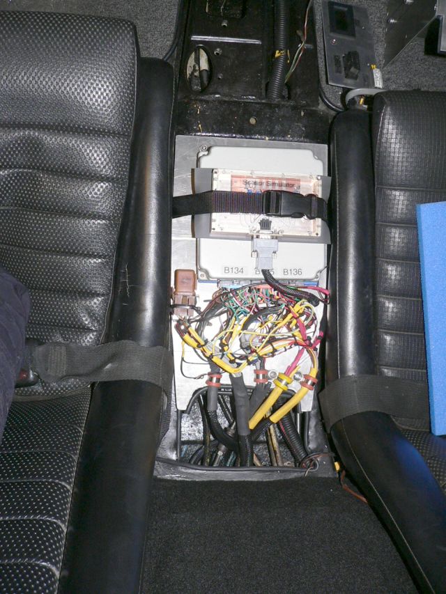 Gas tank is back in, fuel lines are connected, fuel pump is conencted, ECU is mounted, shifter work progressing. After finishing the stainless steel tubing installation, I put the gas tank back in, reconected everything including the pump in its new location. It sits below the battery tray, on the old engine mount. The ECU is now mounted in the car. It is strapped to a 1/8 inch aluminum plate which I cut to fit between the seats. The plate is held onto the car with rubber isolation mounts, much like those used for the fuel pump. The ECU is then strapped to the plate using a compression strap I bought on the way home from work today at REI. The ECU sits on top of a 1/2 inch thick piece of foam rubber which I cut from a "sitting pad" that I also got at REI. On top of the ECU is the sensor simulator box. Sandwiched between the two is a piece of special silicone rubber made for reducing vibration on the inside of submarine bulkheads. (its really amazing what you can get shipped to you as free samples from companies). So the ECU is now as safe as can be from vibration (IMG:style_emoticons/default/biggrin.gif) Wiring to the ECU comes in through an enlarged hole to the center tunnel. The cables are then held in place with insulated wire tie-downs. Still left to do is mount the volt meter/OBDII conenctor plate, but that can wait. The shifter should be bolted down to the center tunnel soon. As usual I used a lot of aluminum and screws to make the pedestal for the shifter. -Tony Attached thumbnail(s) Attached image(s)