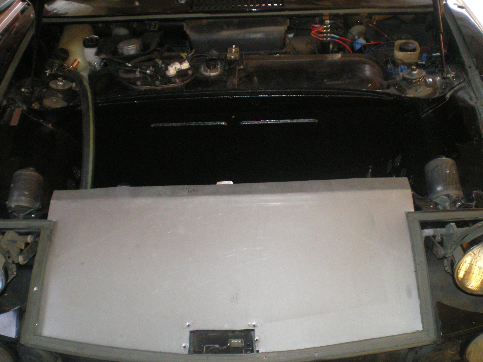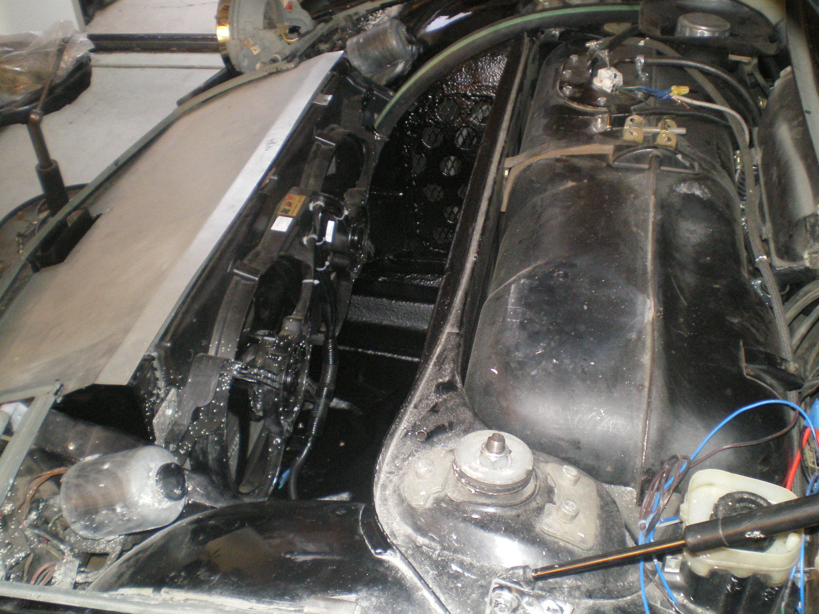 ![]() ![]() Then the 7/8" hose is inserted in to the 1.25" and clamped in place. ![]() Jumping back a bit I finally finished the clutch sans fluid. A quick check for fit.......... ![]() I remembered reading that SS sheathed hoses often fail because road grime gets inside and wears thru the Teflon liner. I should have used heat shrink but I used electrical tape. Either one should make a big difference in this area, for sure. ![]() Found this on ebay for $9. It has an 1 1/8" throat which is exactly the same size as the o.d. of 1" copper tube. ![]() ![]() ![]() This is the manifold that will connect the 2ea. - 1.25" outlets from the suby engine. (It has one inlet and 2 outlets). I came out of the top of the tee with the fill riser (as seen below) but after thinking about it that tee will be replaced with a long radius 90 then the tee will be re-installed. I think it should greatly improve the flow over a sharp turn that would occur in the tee. I'll post it when I change it. So just know this will change a tad. ![]() ![]() Now you can see what I'm after. This fill cap should be the highest point in the car and for sure, in the engine compartment. It is attached to 2 1.25" horizontal hoses which combined are about 18" in length. This will be anchored later or it would fall down. However, I will make some anchor that is easily removable in case that I need to pull up on it for venting/burping purposes. ![]() ![]() ![]() For the most part the work is all but finished in the front trunk area. There may be some additional cutting/venting once it's running. There are a few wires to connect with the Suby wires once I fall back into the wiring phase again. (IMG:style_emoticons/default/barf.gif) I think it was Skeates who mentioned he was tired of playing Concentration with himself when describing the wiring. (IMG:style_emoticons/default/av-943.gif) (IMG:style_emoticons/default/lol-2.gif) (IMG:style_emoticons/default/laugh.gif) Very well put. Overall I'm happy with the way this area has turned out. I forgot to mention that I have about a 3"x 2' x 16" area beneath the radiator that can store tools, etc. And there should be room for a collapsible spare to boot. (would that be a pun in England?) ![]() ![]() ![]() |