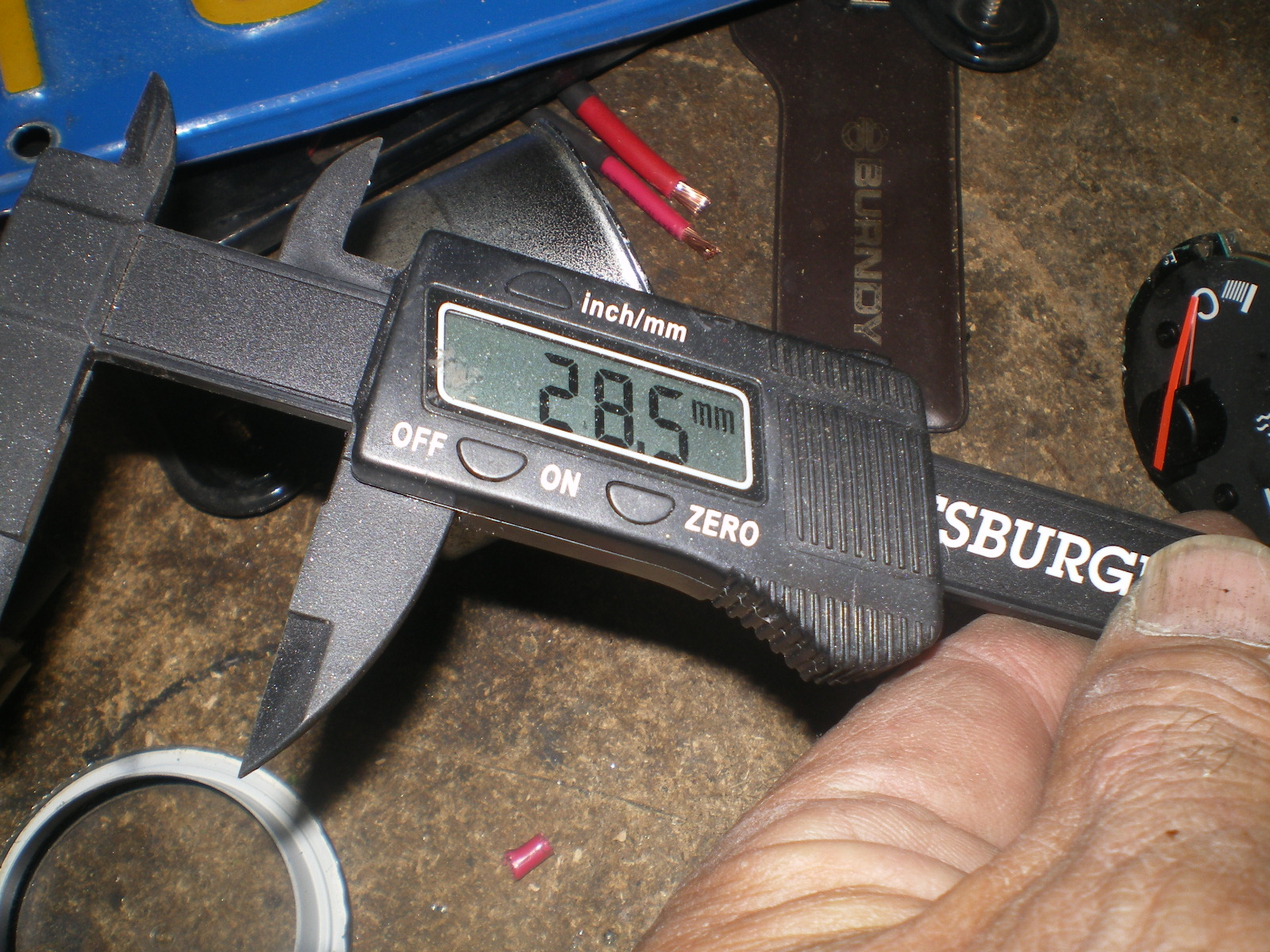 The Suby Temp gage that I just transplanted received an upgrade. I had recessed the gage a bit too far, it felt rubbery and was just a hair out of square. As you can seen an 1 1/2" ABS (or PVC) coupling fits like it was made for it. It needs to be trimmed to 28.5mm in length and siliconed on both ends. The ridge or stop inside the coupling will interfer with the gage if it is placed towards the top. IOW, the stop is dead center inside the coupling until I cut some off one end. Now, the gage sits flush, it's base is sturdy and it sets the depth so the needle clears the lens.