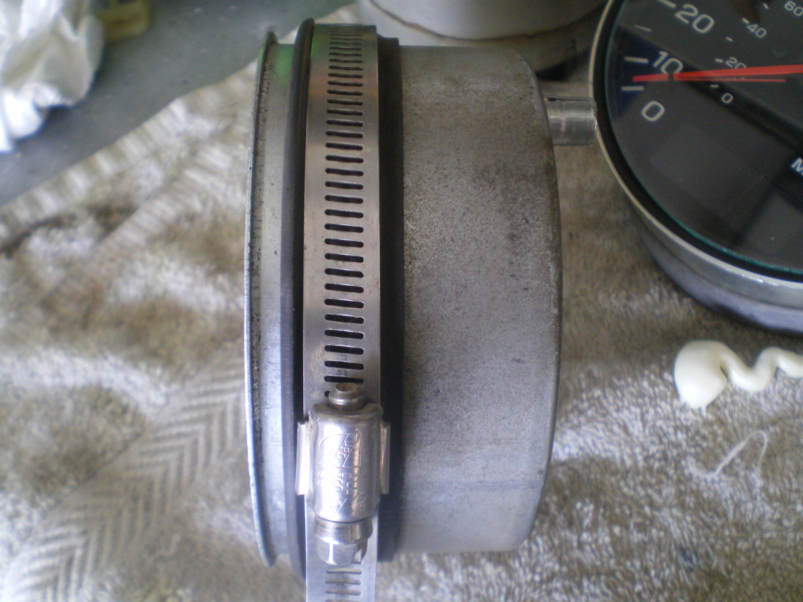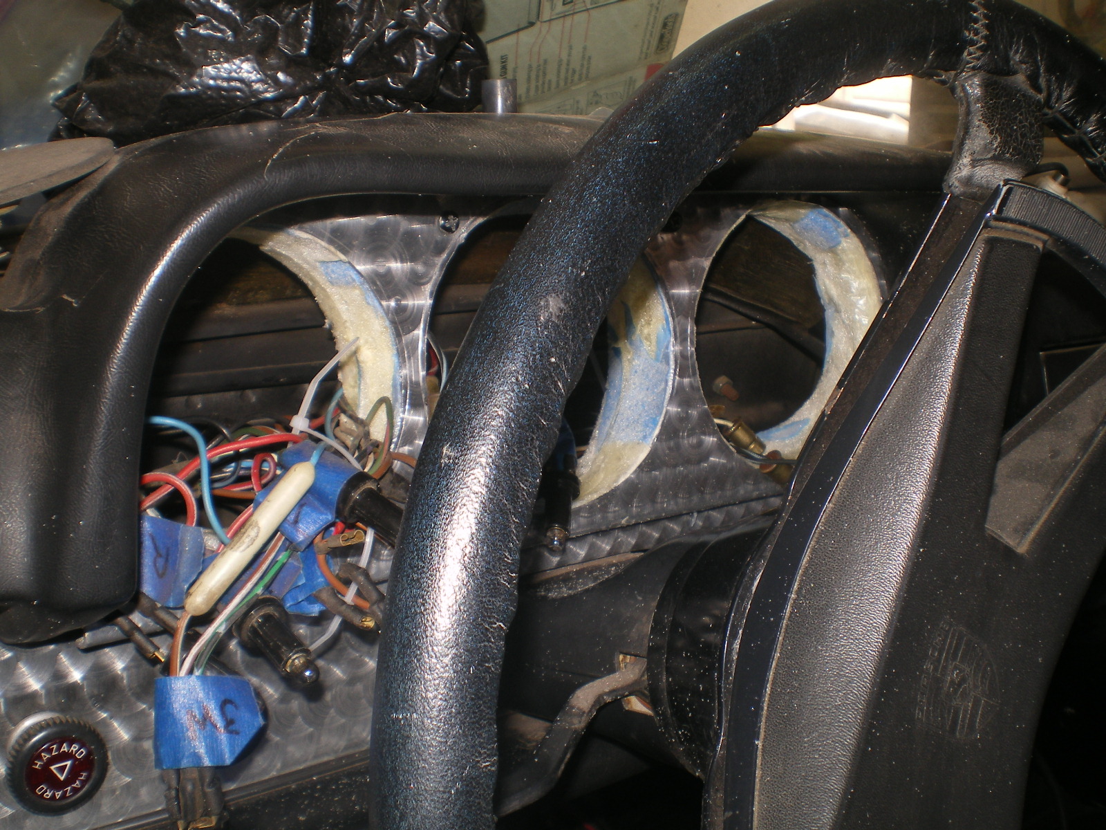 I said I would post the results of my 2nd attempt to support the gages if successful. First time I laminated 3 layers of poly carbonate (safety glass) successfully duplicating the curvature of the panel however when cutting the large diameter holes the fly cutter created enough heat to warp the small span areas. A few hours trashed there. Take a look at the next pic to see if you can guess where this is headed. ![]() Think you know. I thought about glass to build up the back or even cardboard soaked in resin. But I settled on the $4 method. A can of this stuff. It is semi flexible which served me well as it is easy to manipulate for fitting and doesn't break off when bent. Yet it is sandable. So I squirted out a nice layer around everything and let it dry. ![]() These are the gages being taped firmly against panel prior to rotating for urethane foam. ![]() Here it is after curing and first trim. That was done with a hack saw blade held flush with the gage backs. In this pic the first gage has been pushed out and you can see the remnants of tape, wax paper, and even some oozing of foam from the thick area. If you push with your thumbs while reaching around to the front lip with your fingers you can wiggle the gage a few times and it will release from the mold. ![]() A few more as it is trimmed. ![]() ![]() You've already seen what the gages look like installed so I won't bore you with that but if you don't want to go thru all of that you can take the rubber ring's that are tossed and install them from the rear with the lip firmly against the rear of the panel; then tighten the clamp. (IMG:style_emoticons/default/beerchug.gif) . Downside is you would have to install the panel/gages as a modular unit but damnnnnnnnnnnnn it's so easu to install that way. (IMG:style_emoticons/default/biggrin.gif) |
