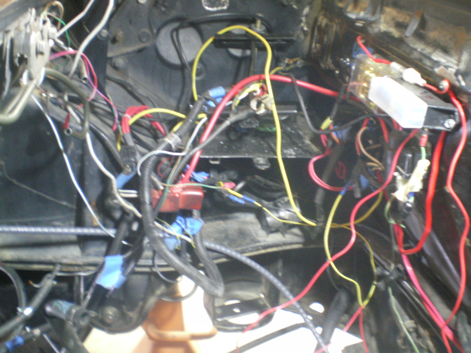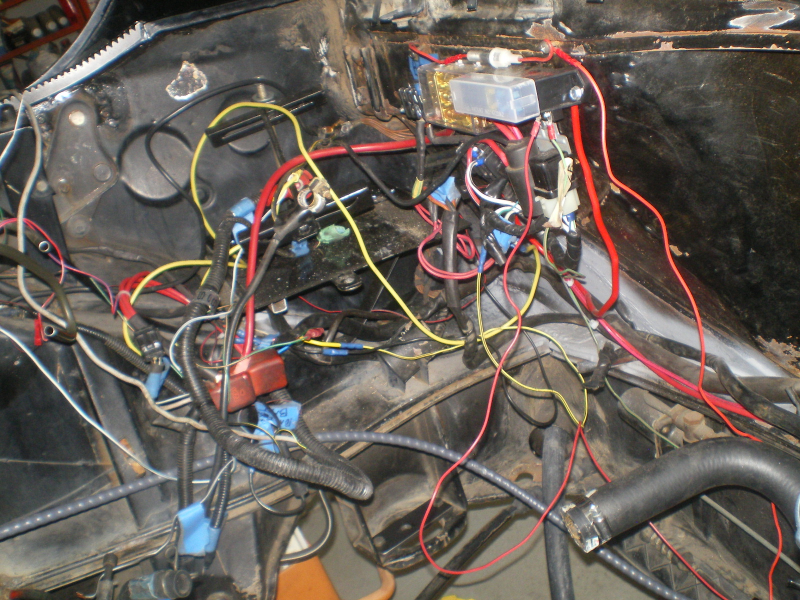 Well I dropped the drivetrain in preparation for cleaning up the Hell Hole wiring and some hose replacement. I'm writing it up step by step so I will have a reference one day when I've forgotten damn near everything I've done. (IMG:style_emoticons/default/mad.gif) This adds to the time it takes but what is really slowing me down is my neighbors kid who's decided to take an interest in my cars transformation. Not that I believe it's unusual for a 14yo kid to show interest in old cars. That is unless that kid's name is Brigitte. (IMG:style_emoticons/default/new_shocked.gif)