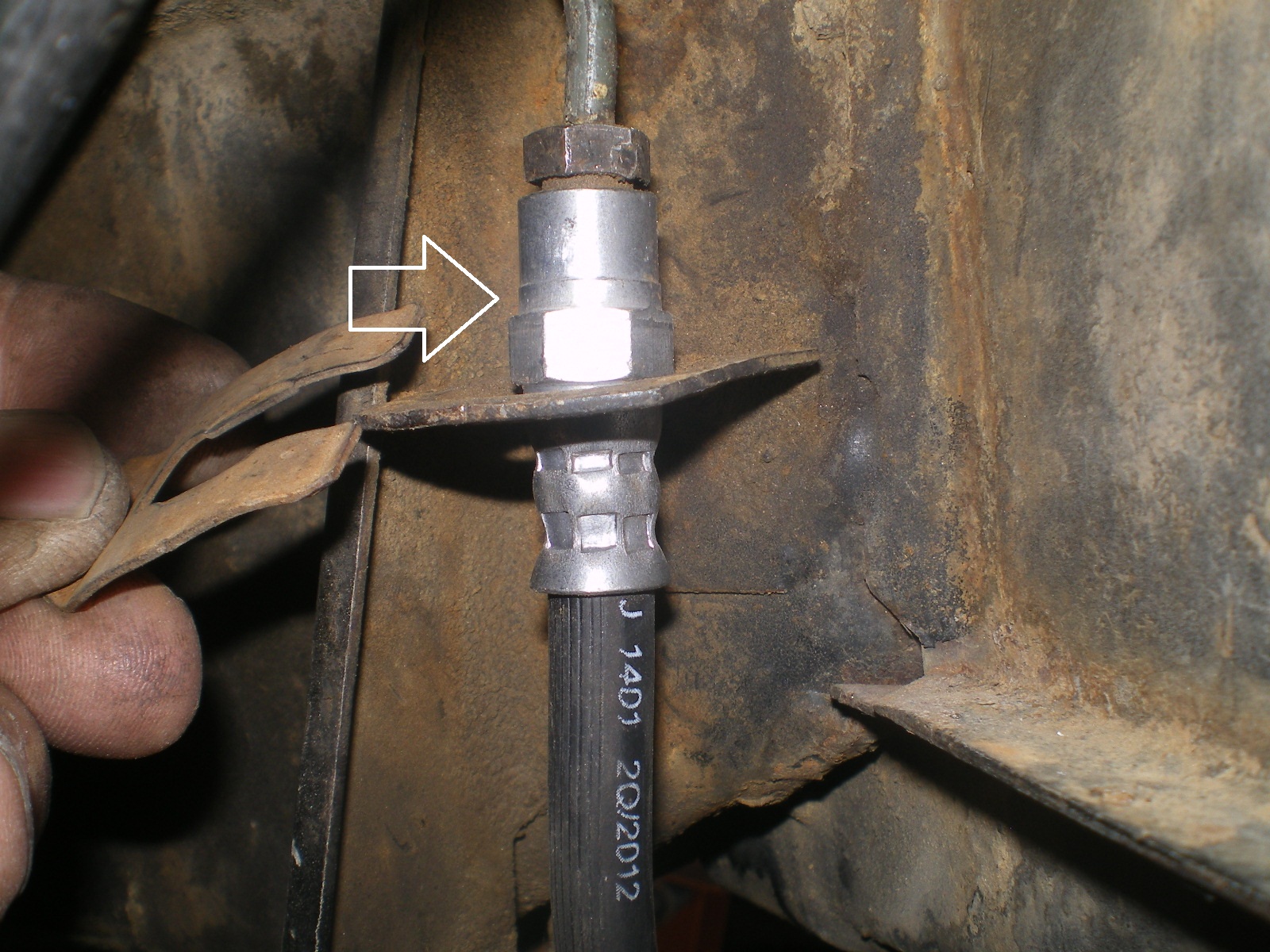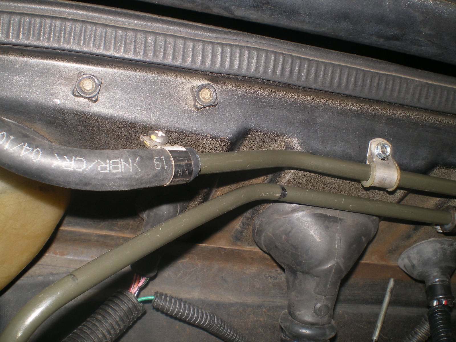Well it will pull down enough that the nut is below the bracket but if I slip that clip over it it will just pull down further. In other words I could pull it down another 6" but it would bend the tube above it. Is it possible the hole in that bracket was drilled out by the PO and is too large. What is supposed to keep it from pulling thru? (IMG:style_emoticons/default/WTF.gif) Heeeeeelp. So that hex bolt will go through the hole? I think the hole is too big or that hose is slightly different than stock. Did the old one fit OK? You could try a very thin washer but that clip pretty much fits the indented space exactly... How about a little JB Weld to close the hole up a bit? It's be plenty strong for that and might be easier than welding it up. |