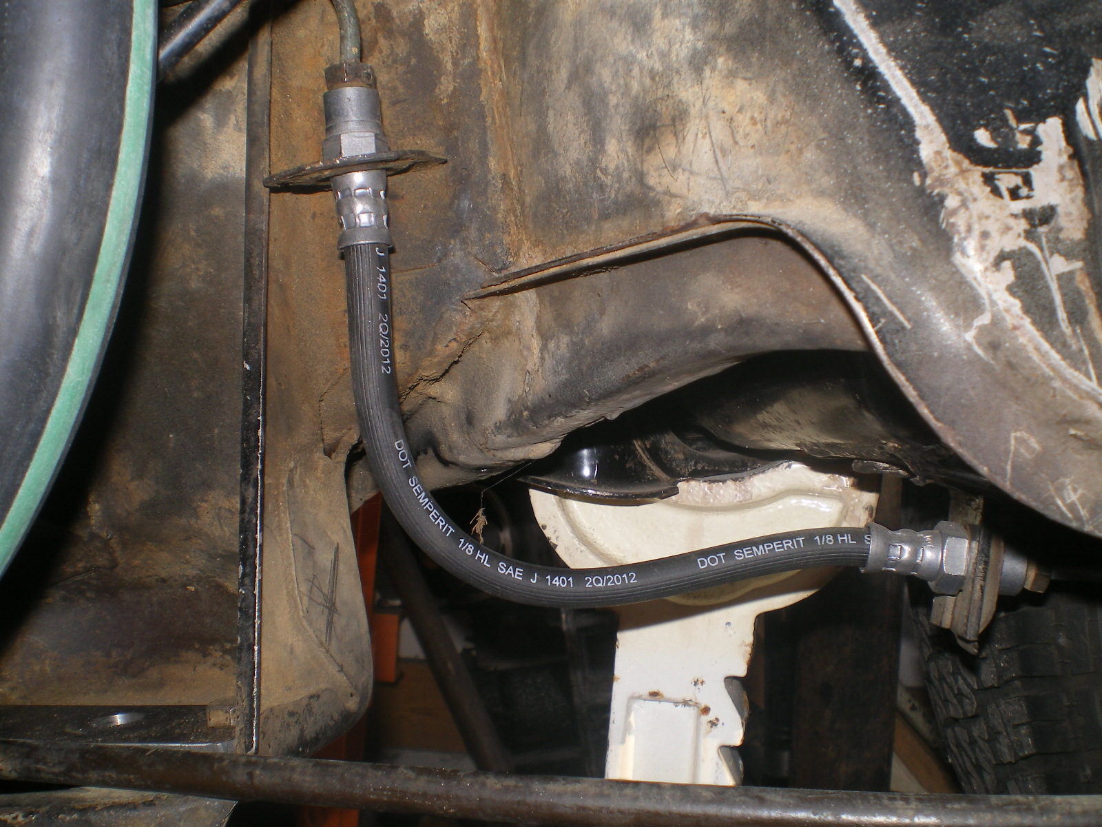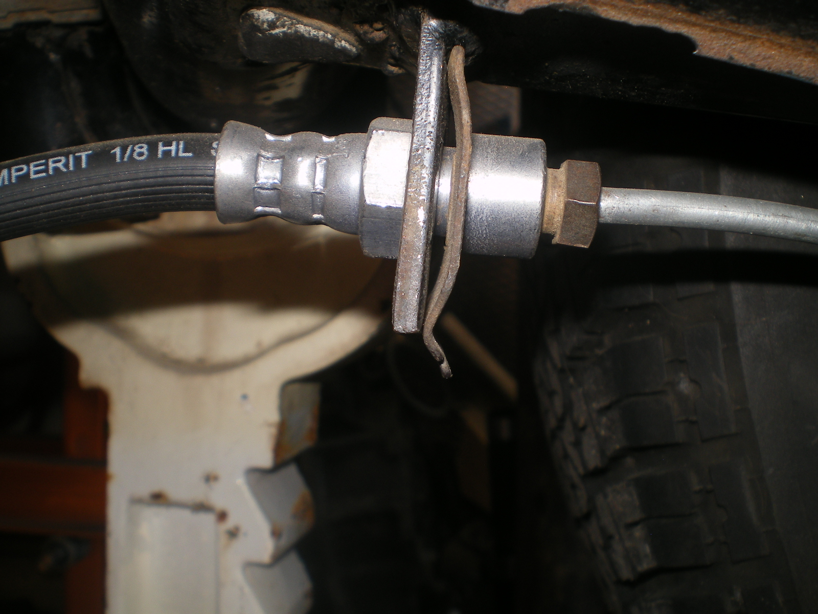 One of the things on my punch list. My brakes lines are bled & fitted up but I'm missing something. I tried to explain this to Erc @ the G&R Event w/o results but then again a pic is worth a 1000 words. Hopefully this will be clear. During the conversion I replaced all the brake items. The PO had used some small SS flex lines which I replaced. They were of a different size and IIRC they had a small union which received the curved washer/clamp. With this set up the upper piece will flop in the hole because it isn't secured. What did I do wrong here? What do I need to order and where do I get them? It should secure like the other end in the last pic, right?
