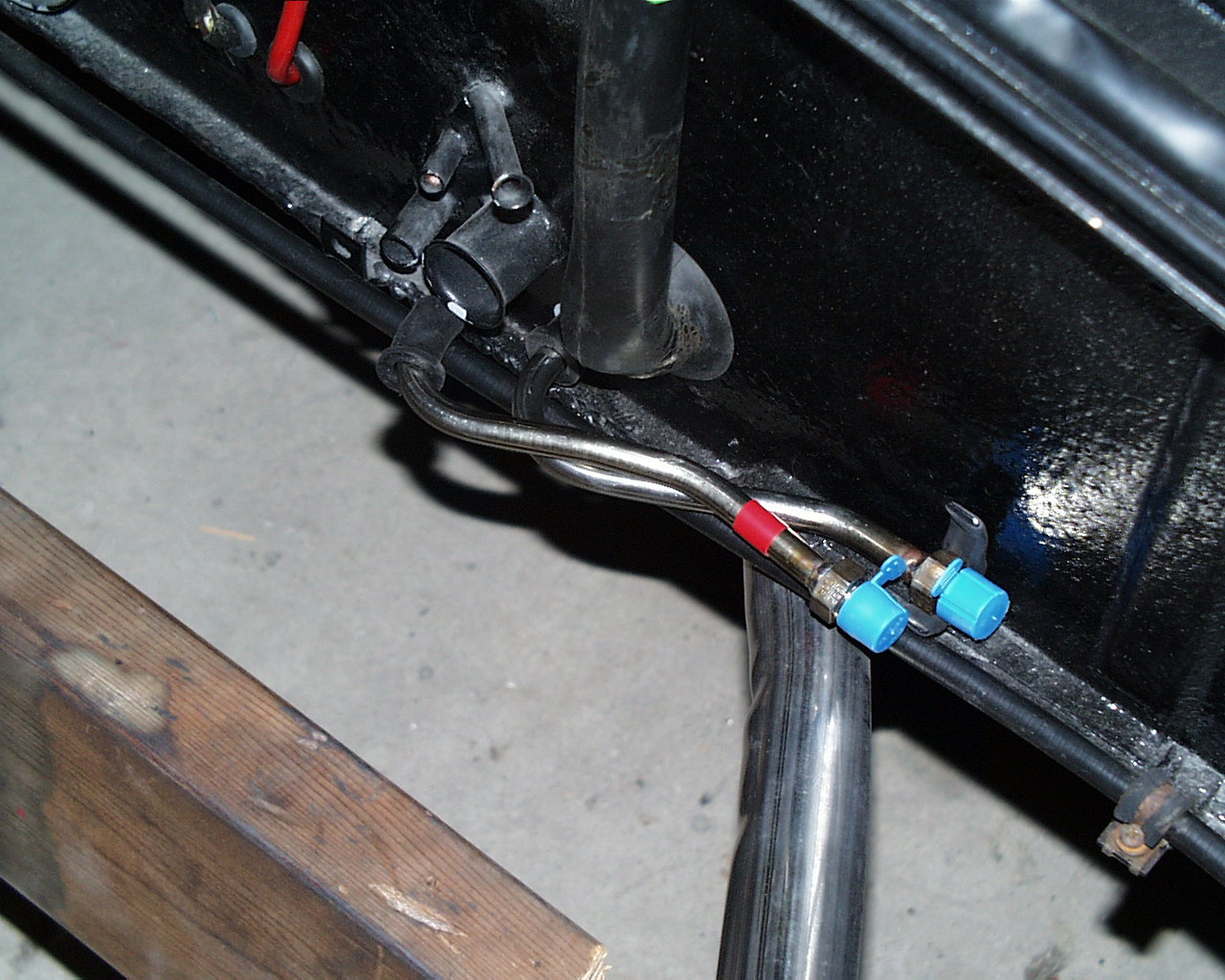 The aluminum -6AN to 1/4npt fittings are ones I had on hand. I agree with you on using steel fittings on the tank, I'll be ordering some up Monday. rjames, You are correct, I dropped the tank into position and there is all kinds of room (IMG:style_emoticons/default/piratenanner.gif) |