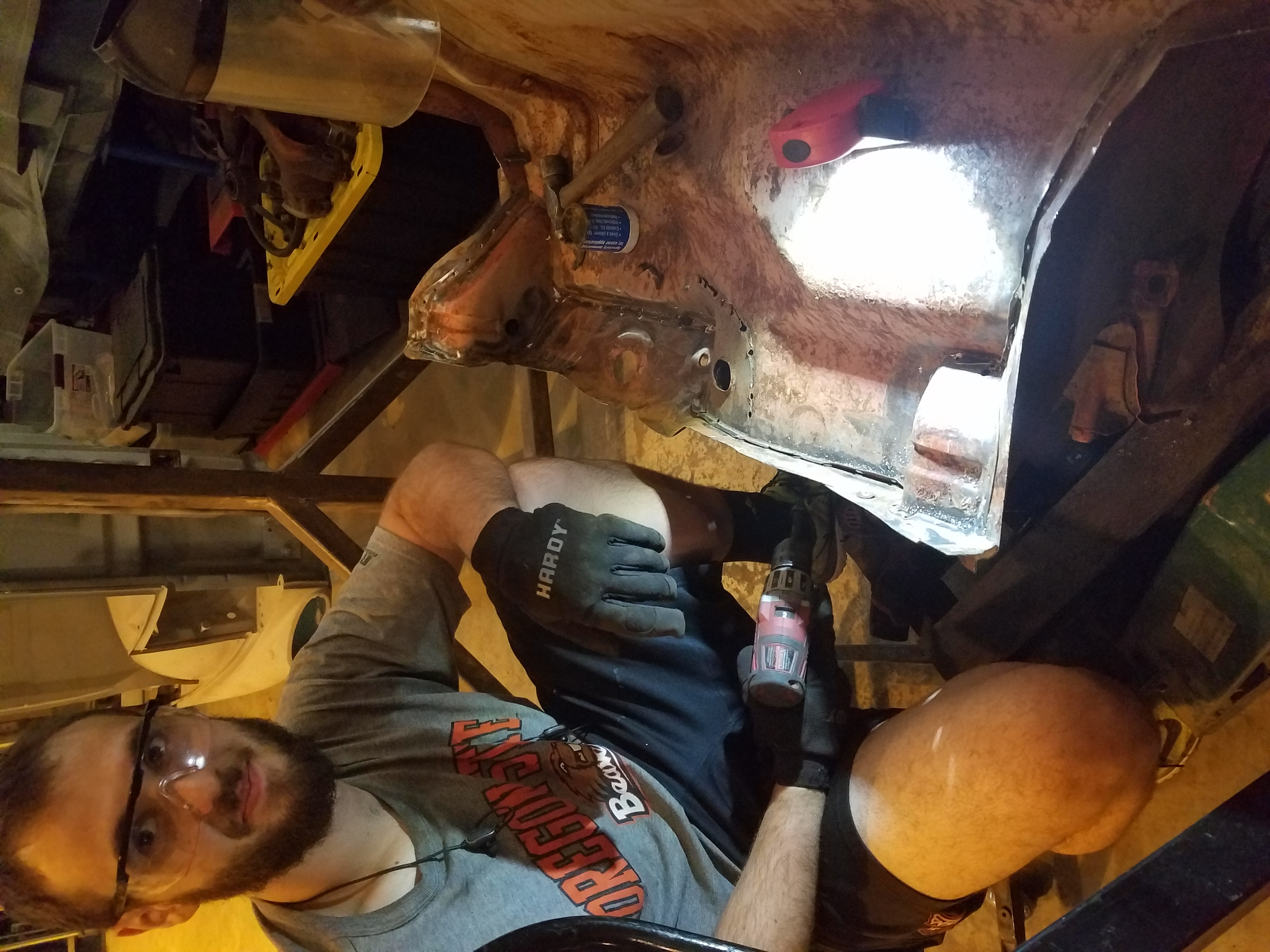 Taylor will be laboring to remove the remainder of the inner fender from our pedal box firewall patch panel. ![]() |