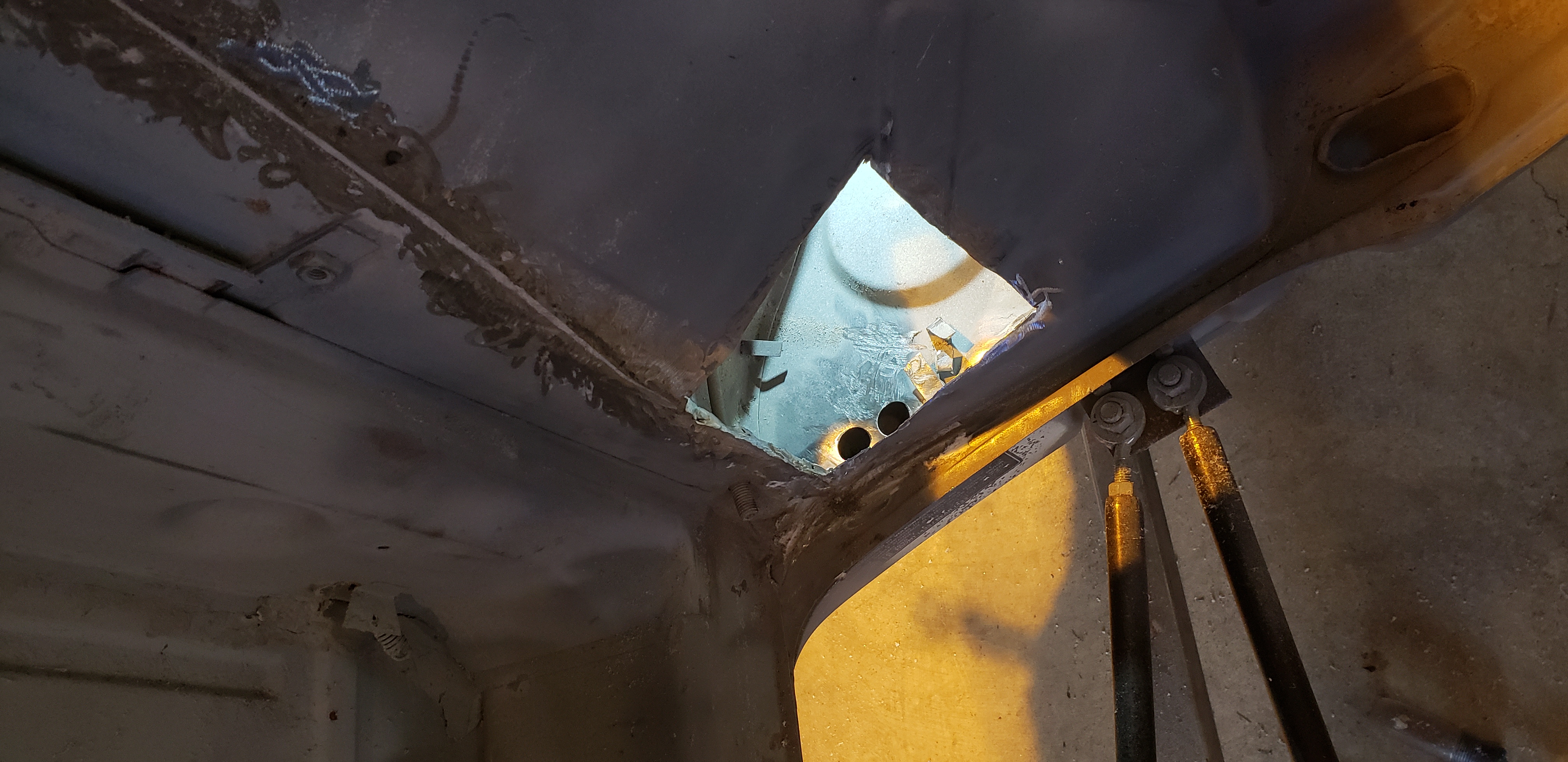 1st. Treated the bottom side of the cowl with OSPHO. It had quite a bit of over spray or condensation from the paint stripping. After the OSPHO dried Taylor scrubbed it down with a red pad. ![]() ![]() Then I gave it two coats of cold galvanizing in case it gets missing during paint. Forgot to shoot a photo. I'll be back. 2nd. Onto the patch at the base of the cross panel. ![]() |