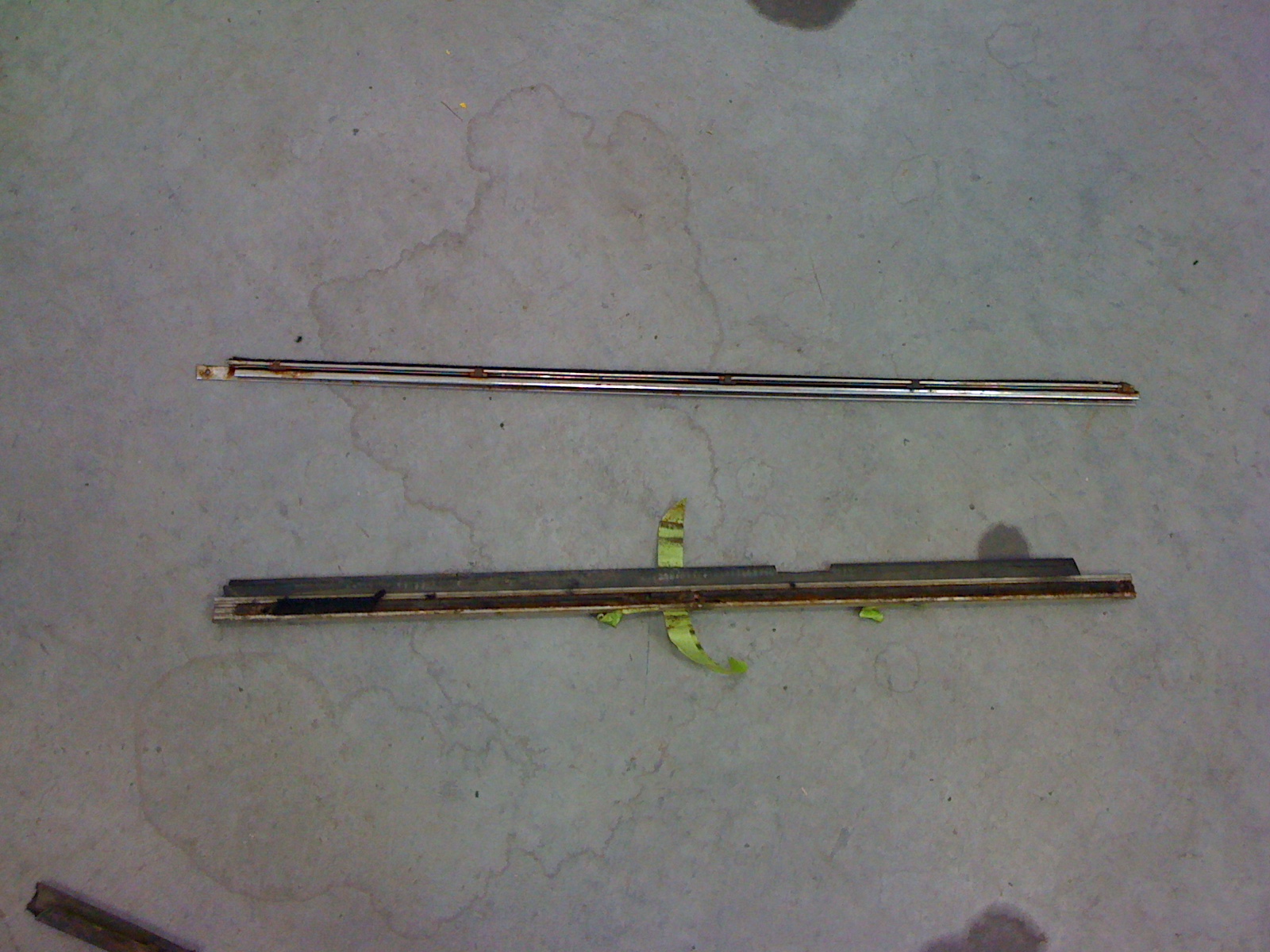 Those go in the door on the outside of the window. The fuzzy strips are very expensive for what they are (Like $70 ea). They are to clean and protect the window. There are like 3 screws (that are usually rusted to poo) that go through the fuzz and hold the assembly on. They suck to install if the window is in place. The channel on top is for the window squeeqie seal.