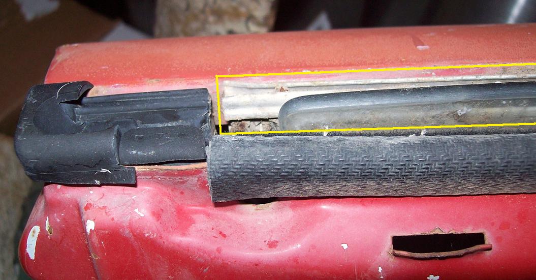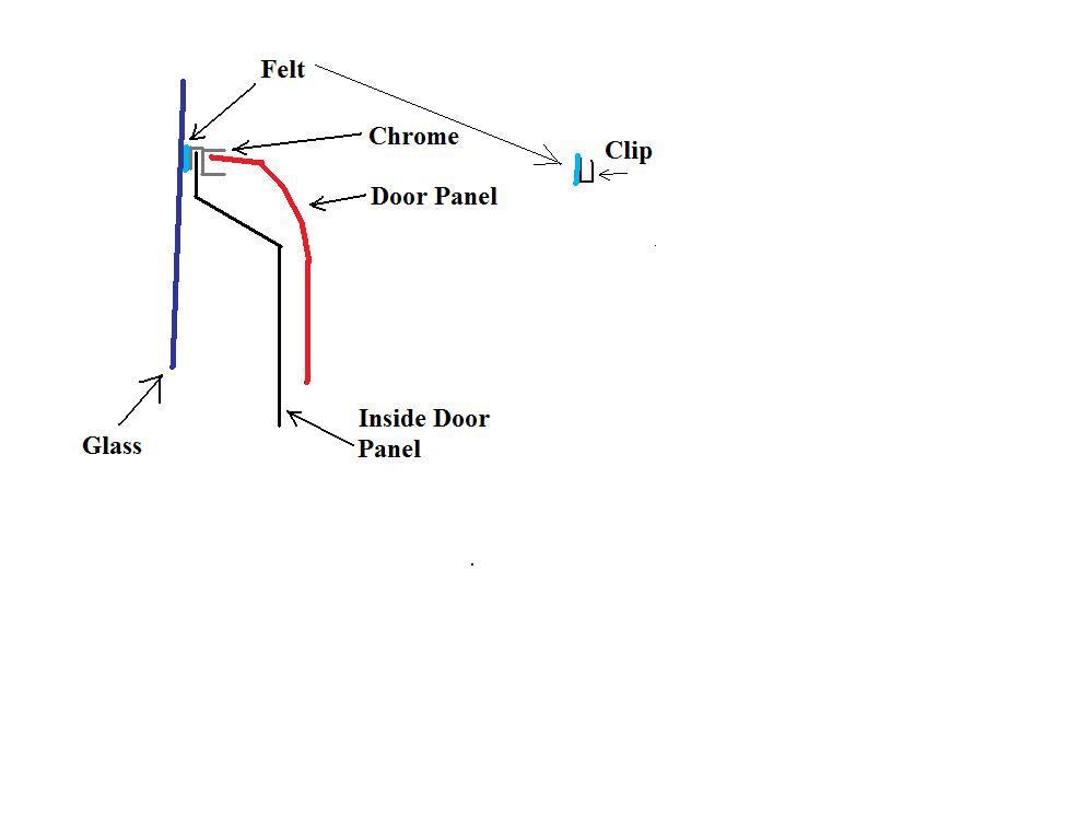 C'mon!! Stop the suspense and tell us what the mystery part was and where it went!! (IMG:style_emoticons/default/idea.gif) Mike OK we were not her to assemble the car but try to see what was needed for the build off. I think I figured the part out. I think it goes here in place of the black rubber. ![]() Here is the part. ![]() Here is a diagram of how I think the part installed. Anyone have a chrome inner window trim at the top edge of their door panel? My 72 doesn't Anyone know if the felt is available? |