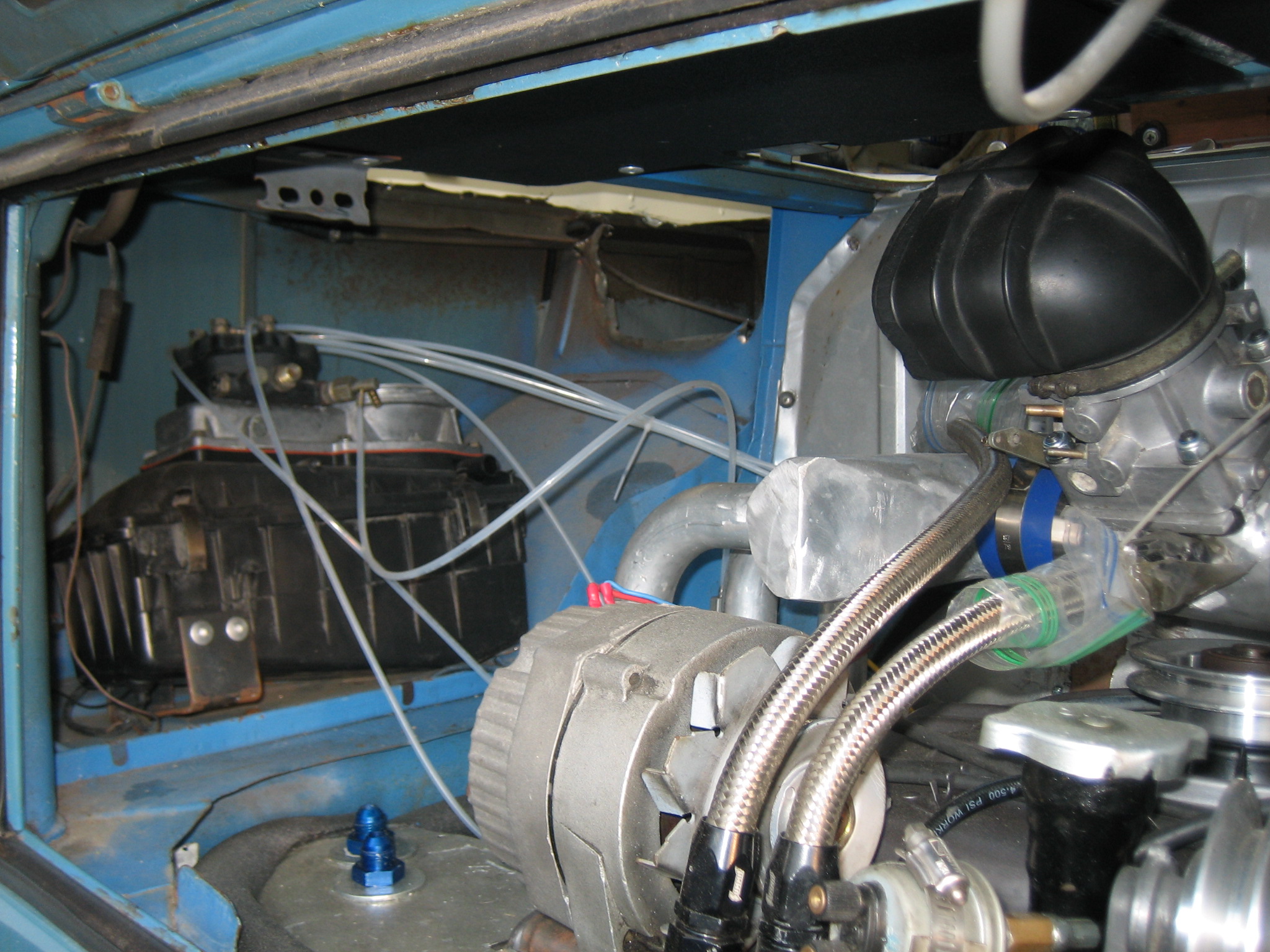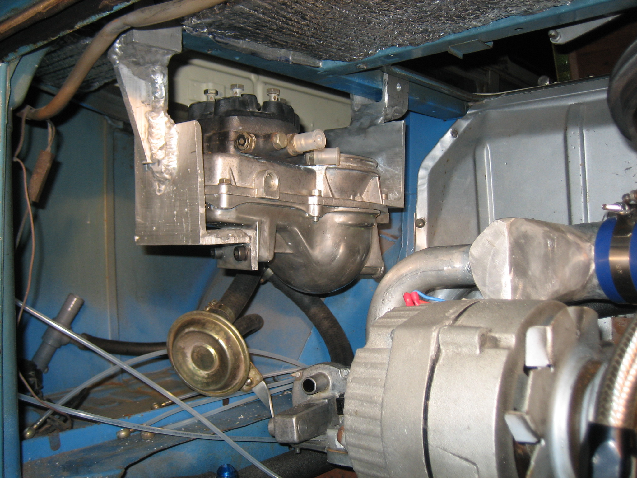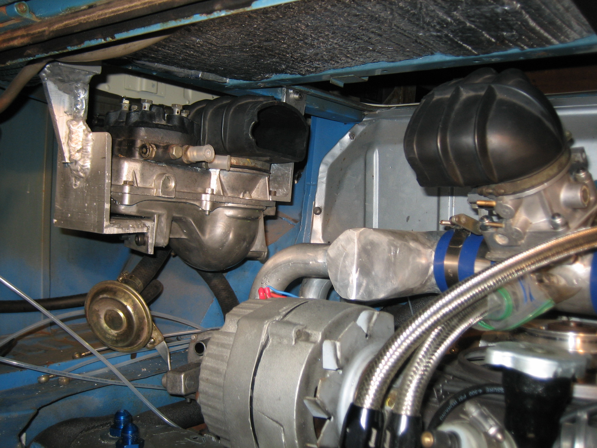 QUOTE Still, it could not be mounted near the center of the engine..... If you make a bracket that bolts onto the intake bolts you could mount the volvo intake just to the left and the pipe would be considerably shorter. You could also hang it out to the left, not mounted to the chassis, but the motor! |