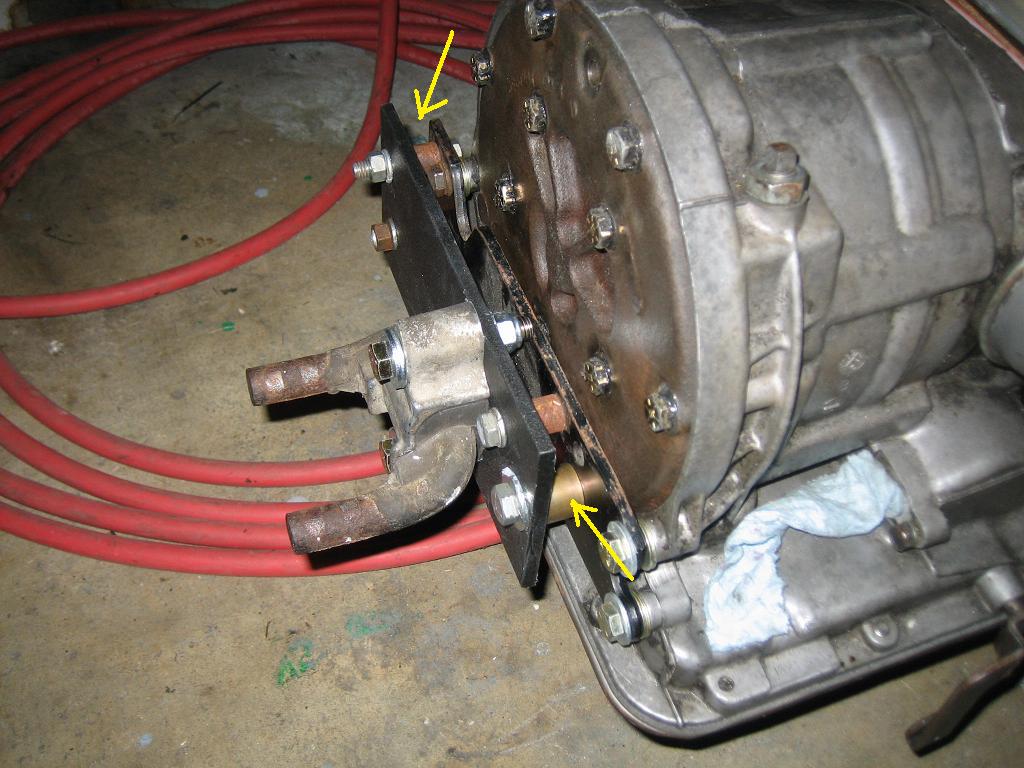 First is the plate I made to utilize the newer stock front mount on my bus. The mount setup originally had the spacers shown. They turned out to be to big and I had to shorten everything up so the starter would clear the cross bar. Arrows depict the space I shortened. Engine on approach (IMG:style_emoticons/default/smile.gif) Engine under bus (IMG:style_emoticons/default/smile.gif) |