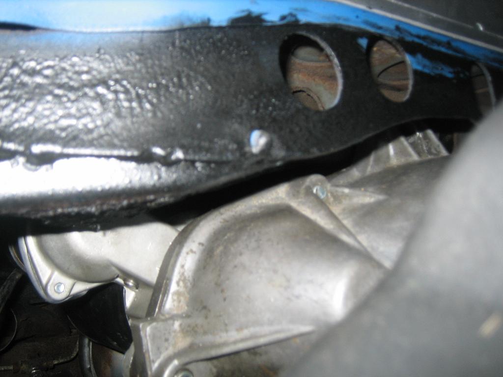 Here is a pic of the starter clearance issue. You can see the nose cone of the solenoid on the left where it can interfere with the cross bar.