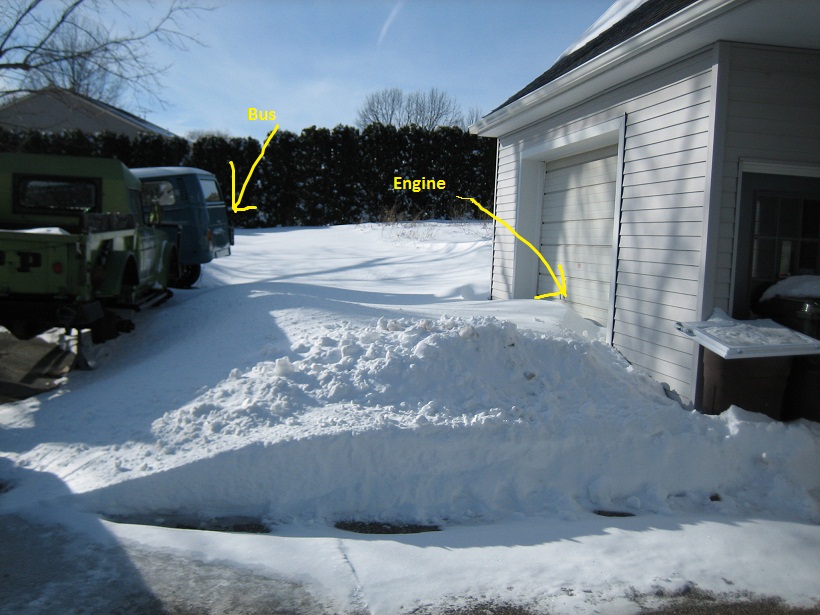 I also picked up 80 pounds of salt the AM to help fight the ice war on the lower driveway. Can't let the salt near the old iron though. Gotta keep'em separated! I say the same thing about every T4 when it goes from untinned to tinned... It is amazing how much bigger they look with the tin on. That corvair motor is pretty compact, but it looks ginormous right now. Very cool watching this transform. I have off work today, so I'll be able to help whenever Mike comes over. Even if my "help" is just BSing and working on my car while he is working on the bus. Zach Zach |