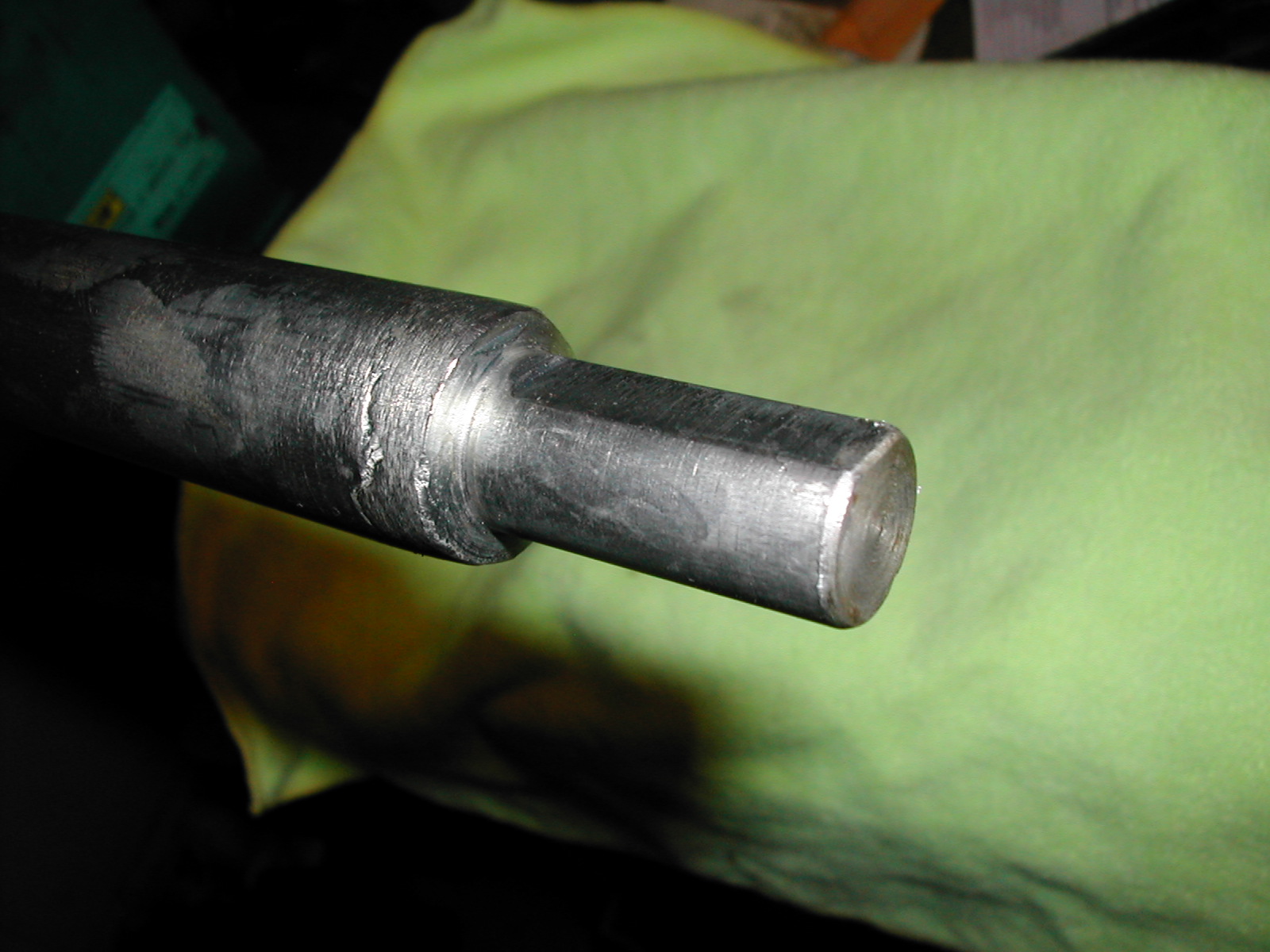 The next problem I encountered was that unlike the steering shafts that have a groove for the pinch bolt, a flat is made in the bar stub. Also, the u-joint is splined, but the stubs are not. Friction holds the thing together, except that on one of the joints the pinch bolt was not strong enough to apply sufficient friction. Here is an example bar stub: