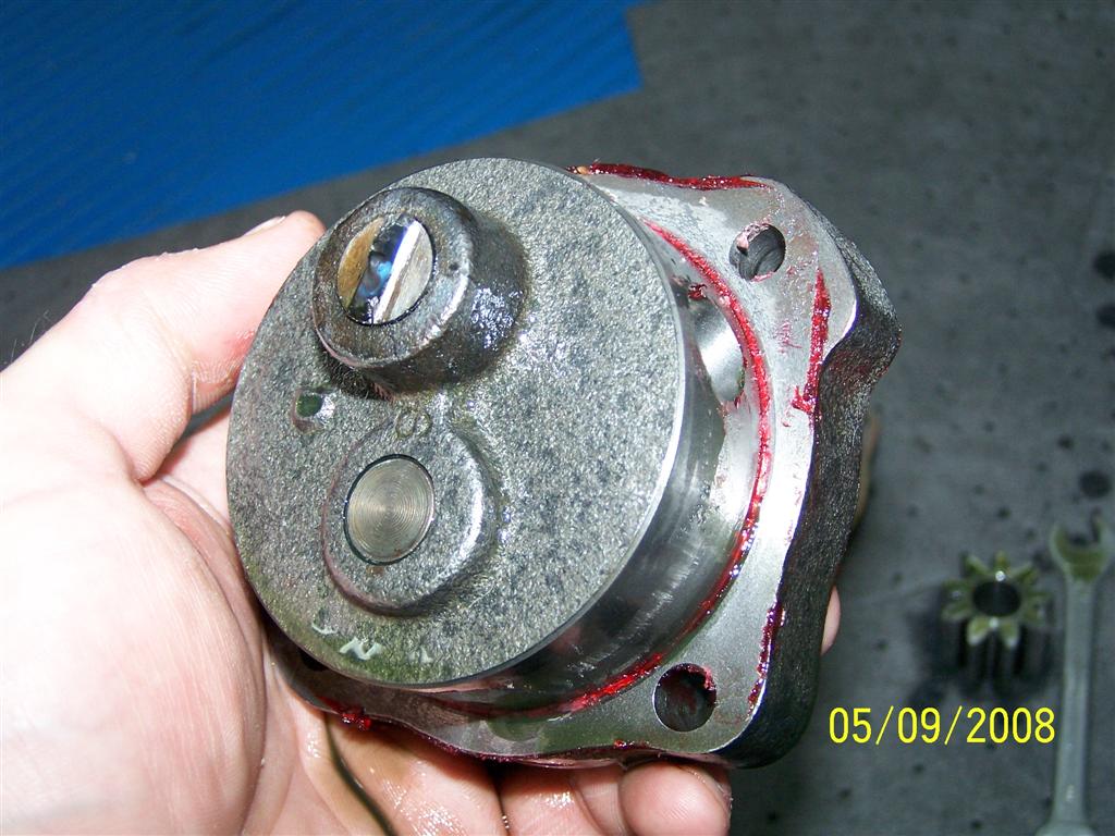(IMG:style_emoticons/default/popcorn[1].gif) I have used MELLING oil pumps with great success., The housing is cast iron and will maintain the center to center distances of the pump gears much better than aluminum. The port openings into and out of the pump can be blended with porting tools, opened and smoothed with great success. The gears are extremely interferance press fit, so the "spinning shaft "problem does not exist.(never heard of one doing this)...the back housing, against the cam gear, is solid...no extra nuts... to assemble housing ...in the way..(or to screw with) SOME people will disagree, because the OIL PUMP housing is cast IRON, and the Engine BLOCK install area is ALUMINUM. Maybe it will be 190 /220 degrees. the expansion differences (if much)(at all).and the worry factor ?...Can be ELIMINATED by Radusing the inner /outer mating surfaces at the crankcase and installing a ..O..ring...at the pickup tube entry. now you got two seals, the oem one and the one you will creatate. Big deal. the oil pump is a critical component of the engine , and should be cleaned, inspected, assembled, "feel Tested" for binding and smoothness of rotation. I'm talking about "BLUEPRINTING " the damn pump guys. Its worth the extra trouble to know your oil pump is going to work properly perfectly. And...MELLING has more experience, and manufactures more oil pumps than all the rest of the "trick "oil pump companies combined and has been doing so for Years. :the end. (IMG:style_emoticons/default/popcorn[1].gif)