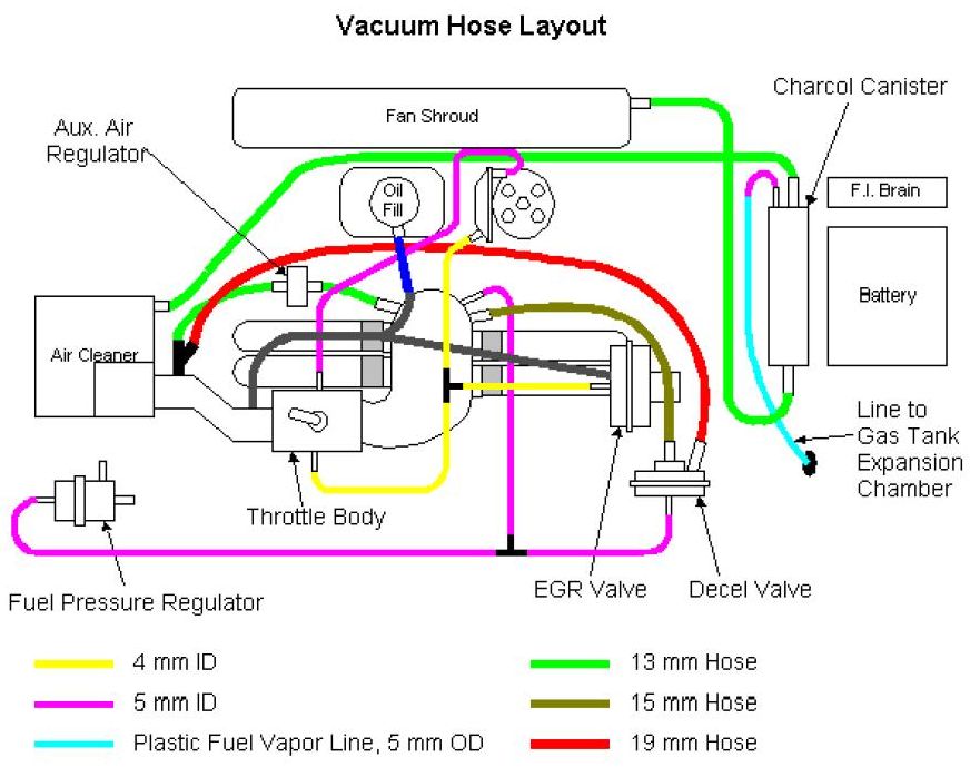 whats wrong with the charcoal conister installation on these diagrams? They both show the air from the fan shroud go into the wrong end on the canister ... The pressure side on the canister is on the side with the two nipples. Fresh air and vapors come in from the same side. The vapor/air mix is then expelled on the drivers side of the canister and routed to the engine air-filter housing ... What do i win? (IMG:style_emoticons/default/biggrin.gif) Andy |