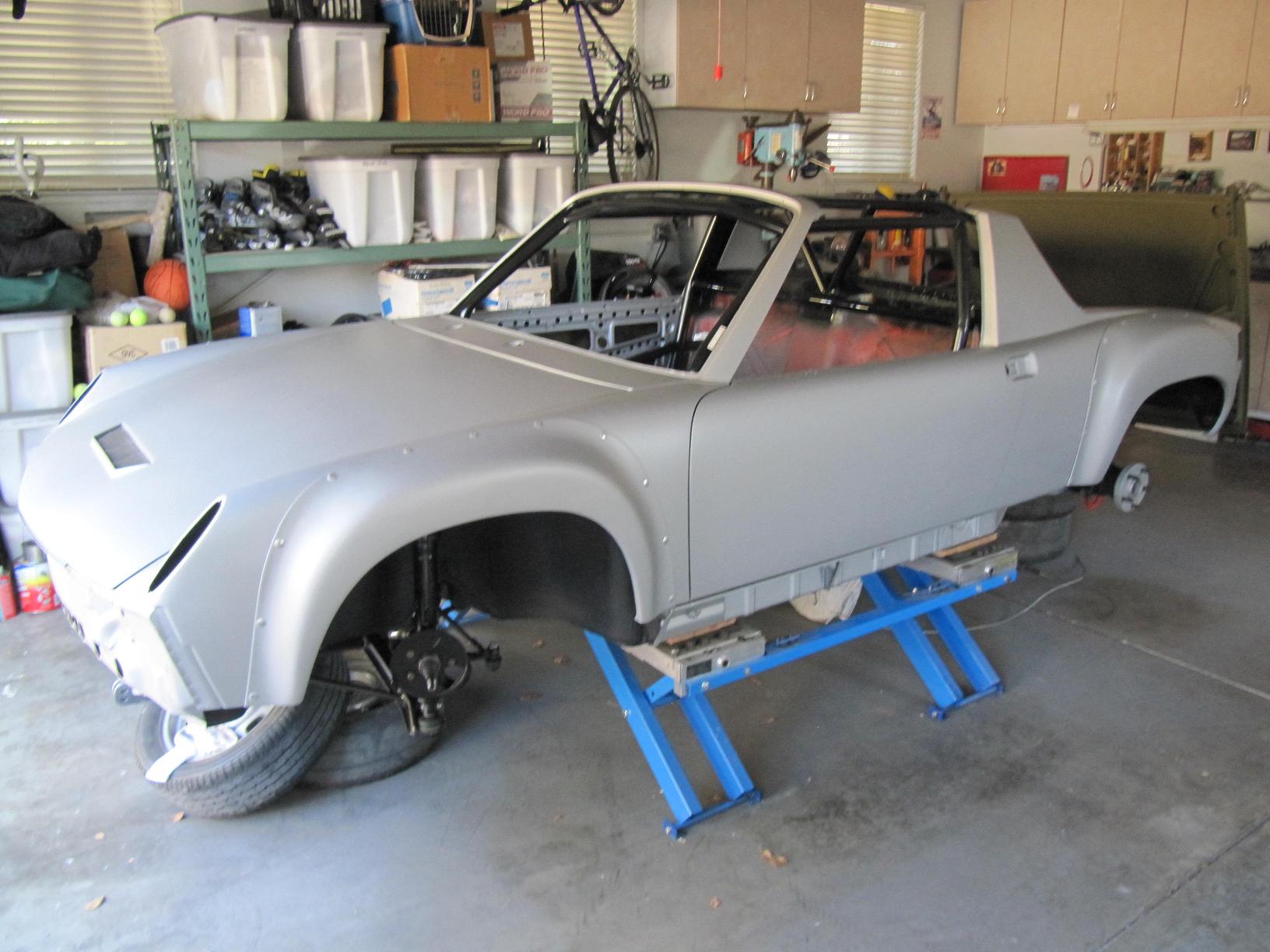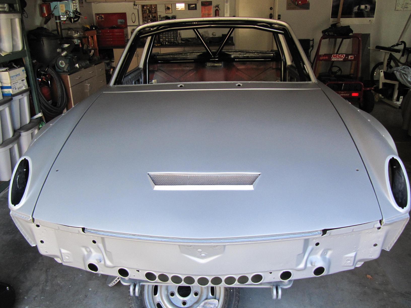 I have some more time to post pictures correctly. The car was painted last month a matte metalic silver. This paint is a polyurethane and looks awsome in the sun. In the garage it looks a little dull. Basically it looks like glass beaded aluminum! The paint is from TCP Global in San Diego. Hot Rod Flats is the color line.