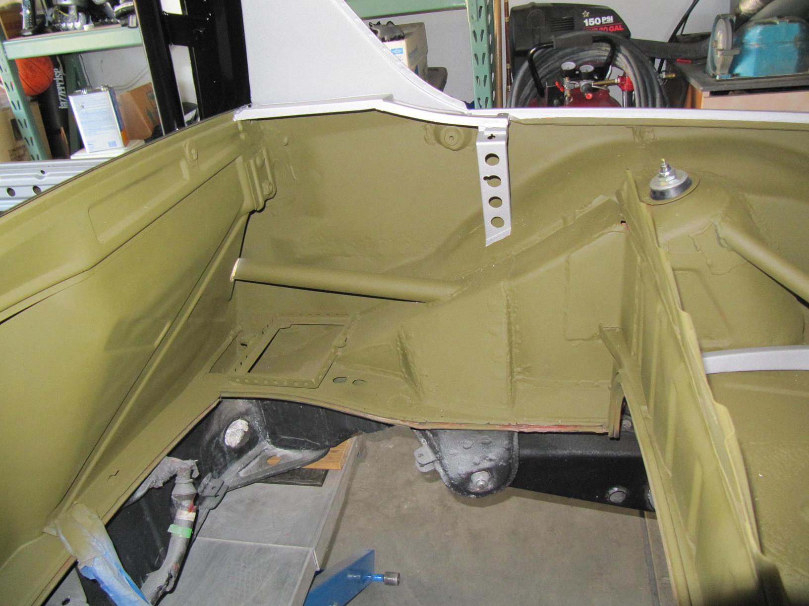 A dozen spray cans of olive drab was easy to do in the front/rear trunks, inside the doors.