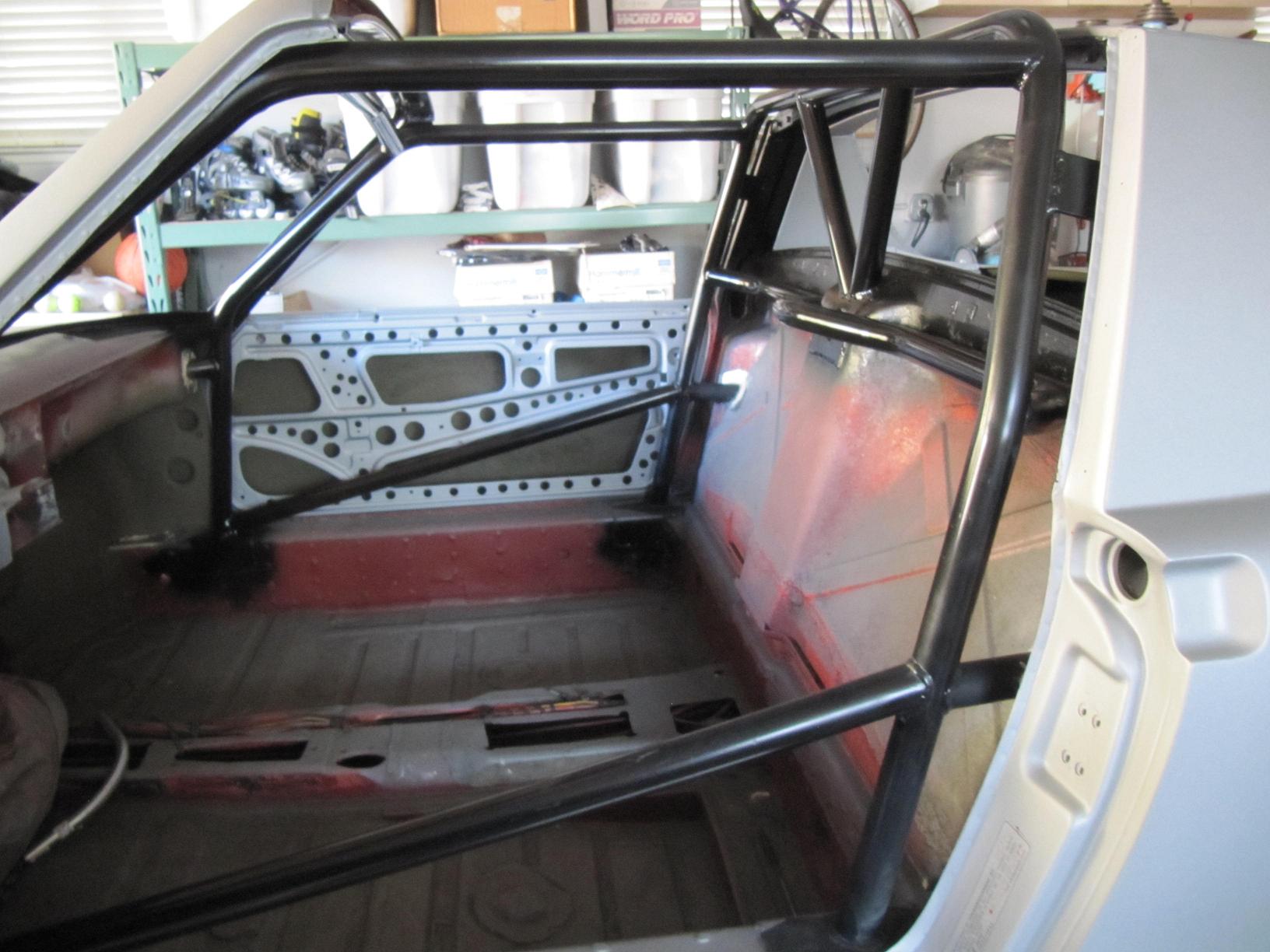 I did some bracing in the rear trunk as well. I copied a lot of ideas from Jim Patrick's web site. I studied those cages a lot, Oh and I LOVED the way someone on our site did their rear lid. It folds back out of the way for some mad access to the engine compartment. It involves the front trunk mechanism from an 89 Buick Le Sabre. It was pretty easy to get bolted to the body and the welded to the trunk. The square tubing on the top of the lid keeps the front of the lid from lifting up.