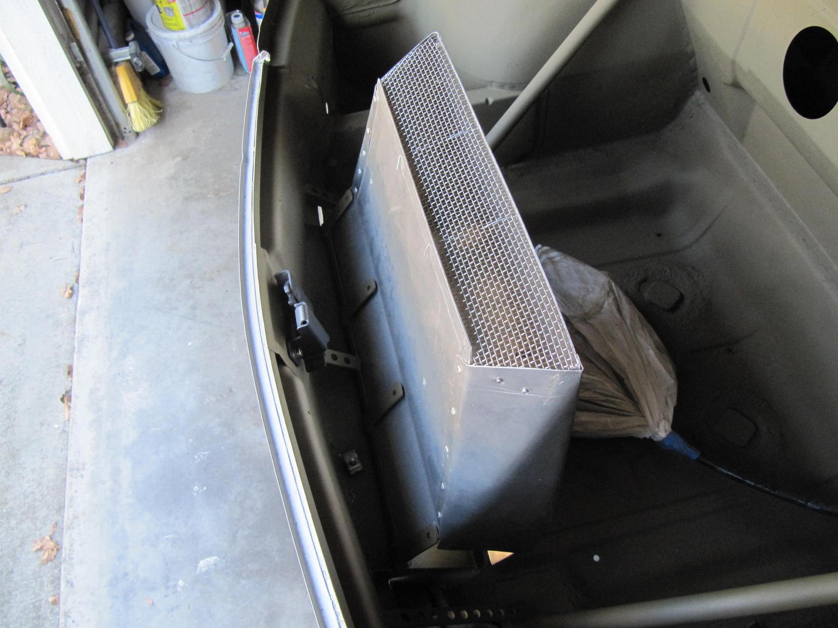 Here is the front trunk with my "deluxe" home made shroud. This was fun to do.