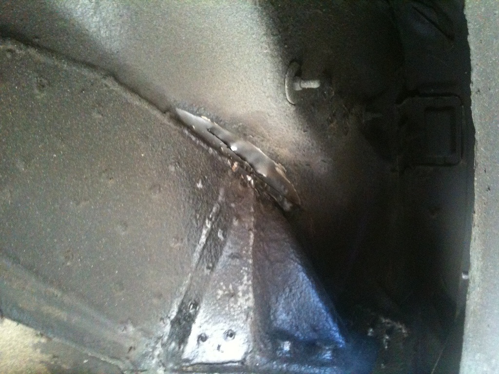 This can't be good. The seam is separating under the battery and under the right side of the engine lid support. I also noticed a crack above the GT chassis stiffener on the same side. I searched everywhere else in the area and it looks fine. I wonder if its rusting out from the inside? Any ideas on what this means? Do I need to pull the motor to fix it? Replace the whole section or just weld it up?