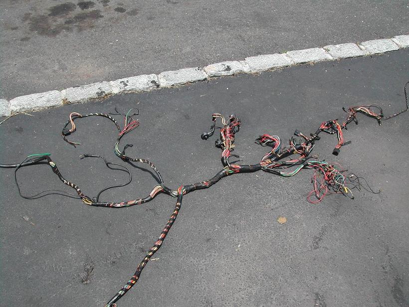 the whole harness must be installed from inside the cabin! everything that goes to the back of the car, rear trunk, engine comp, center tunnel has to be fiddled in from the FRONT of the center tunnel backwards! meaning, the taillight wires first, then string the whole back end through. NOTE: in the front part of the center tunnel, the harness routing is *different* for early/late cars! don't miss that first hoop or you won't be able to fit the mount for the floor board! it's a lot easier to fiddle the big connectors through tight holes FIRST, even if they're not the first thing in the harness, if you feed the smaller wires first, the bigger connectors won't fit anymore. this will take some practice (IMG:style_emoticons/default/biggrin.gif) yes, all the engine and rear trunk stuff fits through the rear firewall hole, even the big rubber boot! trust me, you can do it! btw. it *REALLY* helps having a second person sitting in the engine comp while you feed the stuff through! once the rear is in place, feed the front part through the front firewall (left from the steering wheel). same here, feed bigger connectors first! (IMG:style_emoticons/default/smash.gif) Andy |