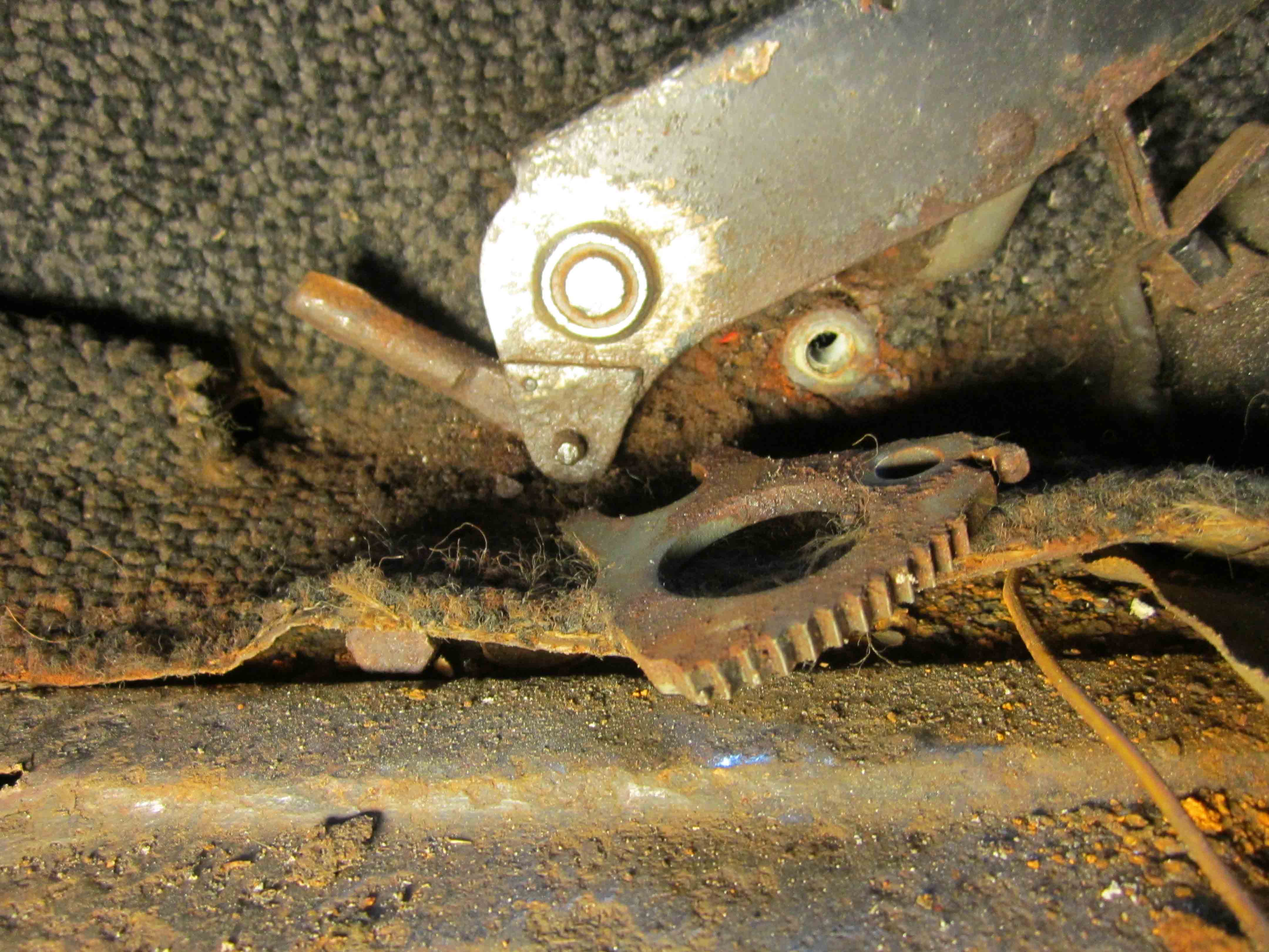 I am trying to remove the carpet by the drivers seat. The brake handle needs to come off to remove the carpet so I can remove rust on the floor pan. Should there be a bolt head or nut on the brake pivot? I do not have anything to turn. see picture.