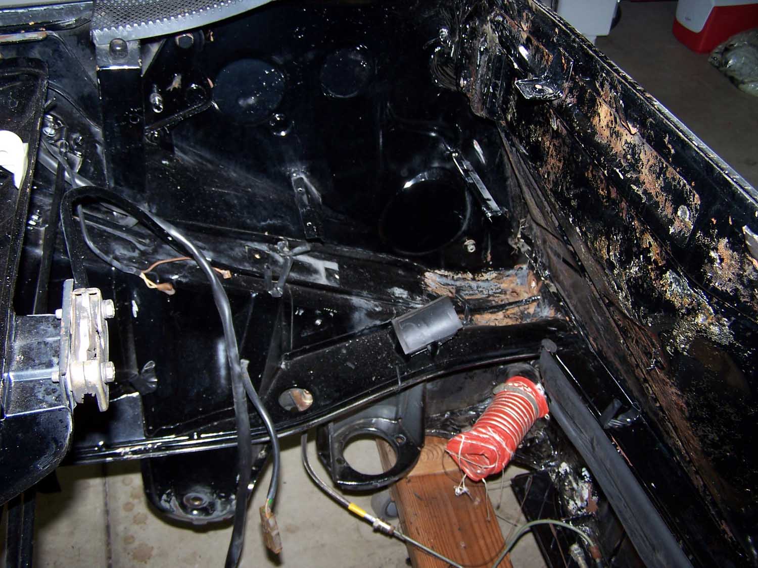 QUOTE looks like the new tub used to be yellow That yellow is the color of the original dash! I have heard that they used to use what parts they had left at the end of the previous model year first. The car is black with a black paint code and has only had a light second coat put over the original paint! It is one of the cleaner bare tubs I have seen! It has a small amount of rust in the drivers rear floor because the PO added a trunk pull and cut a large hole in the firewall for the water to flow right in! I can see no evidance that the car has ever been in an accedent! |