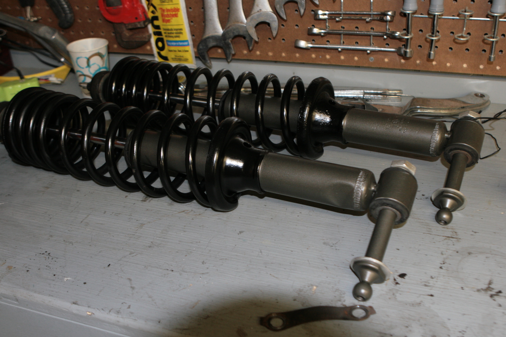 Day 2: rear shocks and springs reconditioned and ready to be installed. Front suspension apart and blasted. Will paint or powder coat all the parts early tomorrow and install later in the day.