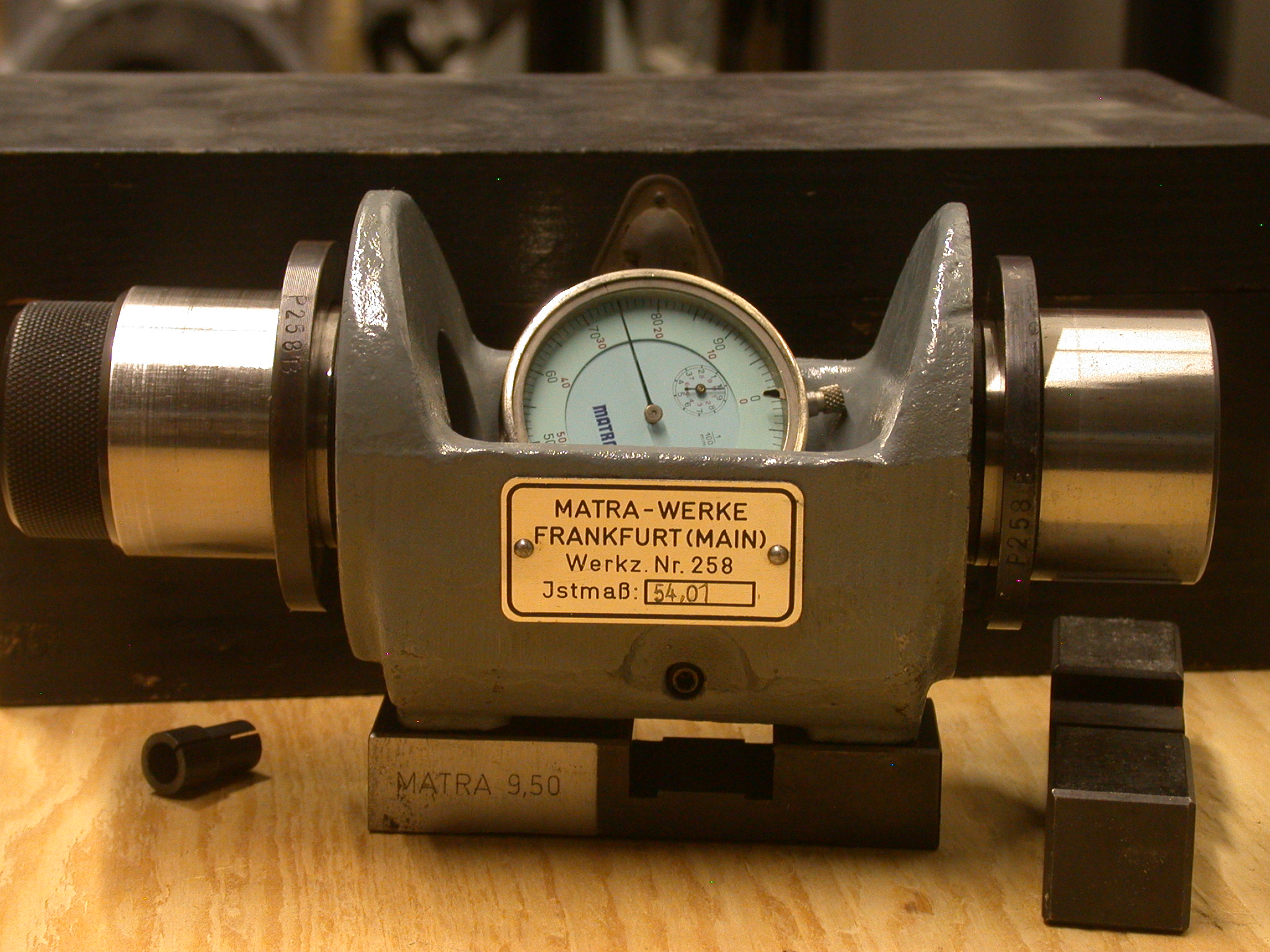I use the factory tool, or at least a clone of it. Photo below of factory tool, P258, with all accessories. This tool will only measure pinion depth; other tools are needed to determine ring gear backlash and differential bearing preloads. I'm curious to see the clones being made. Jon B. Vista, CA Mine was made by a machinist and has the same dimensions as the factory tool. I only have to use it when replacing R/P for failure of inspection or traumatic failure. Most of the time, and I have covered this extensively here and in my DVD, I instruct people to measure gaskets and maintain factory set specs. The vib issues is not much of a concern in the small increments we deal with. It is mainly a nuisance. Many other manufacturers do not do the finite test in leu of just matching patters with dykem or other indicator to a visual pattern. In a race box, though, I would keep as much friction and vibe out of your setup as fatigue will be highly magnified. Bearings wear and tolerances are quickly lost. |