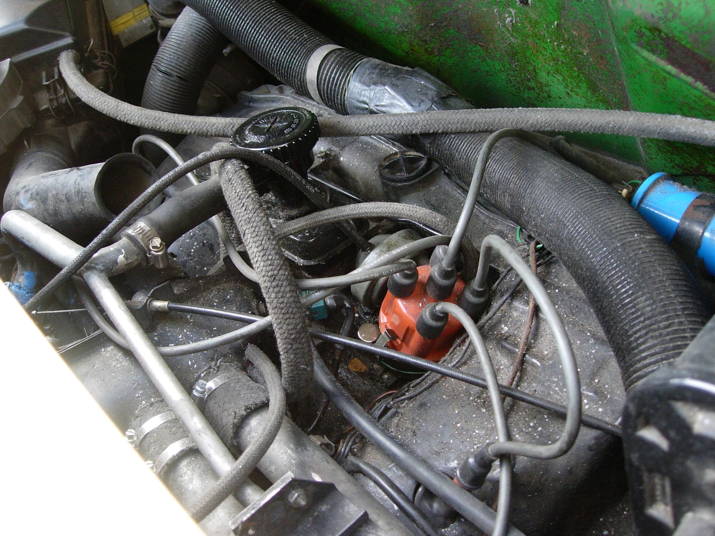 a few more of interior-engine-rear trunk and front trunk.. but at this point.... looks like too low of a price... gorgeous car!! good luck with the sale.. 914runnow: I have to go to work soon, but I'll take more pics ASAP. To clarify, the firewall on the driver's side, near the engine compartment and trunk release, has rusted through in an area approximately 3" wide. There is a pinhole in the corresponding area of the firewall on the passenger's side. These holes are above the area that usually rusts, and I believe they were caused by water soaked sound deadening material. I think the price is fair given the situation. I'm hoping for a relatively quick sale. billh1963: The rear conversion was done with drilled stock hubs, and I'm not sure about the front. The Fuchs are aftermarket, and the chrome is flaking in a few places. It would be relatively easy to polish them. The trunk release is cable operated, and there is no key hole of which I am aware. Thank you for looking. |